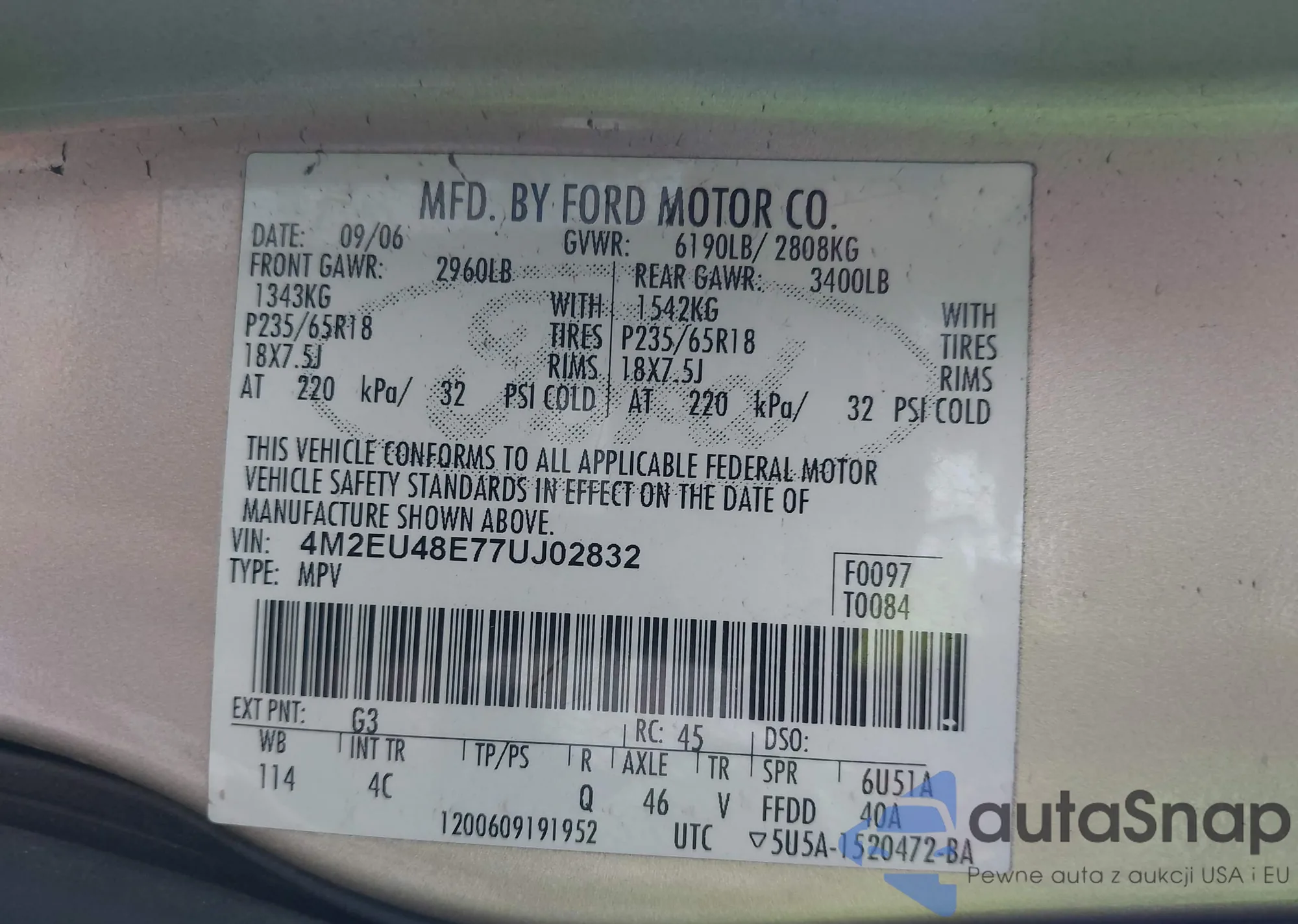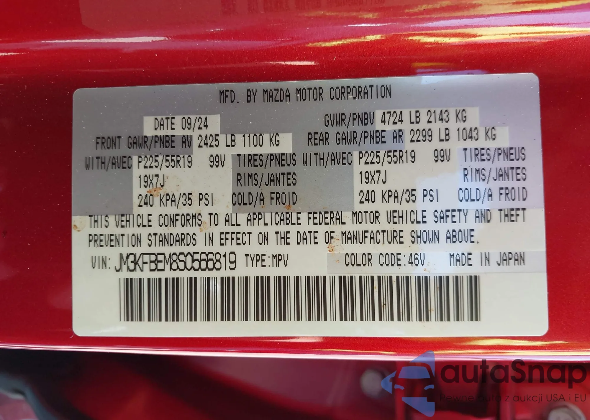 LOT: 43046641 VIN: JM3KFBEM8S0566819