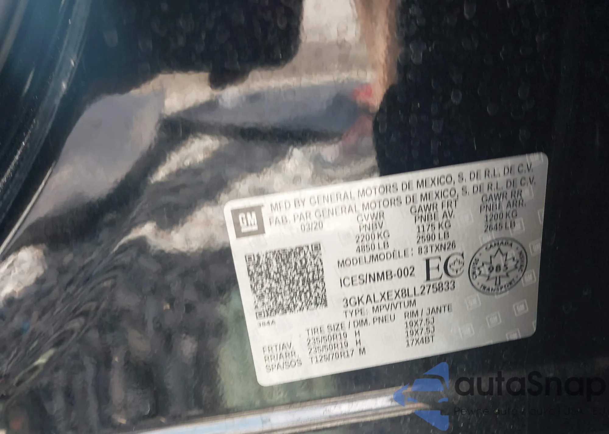 • VIN 3GKALXEX8LL275833