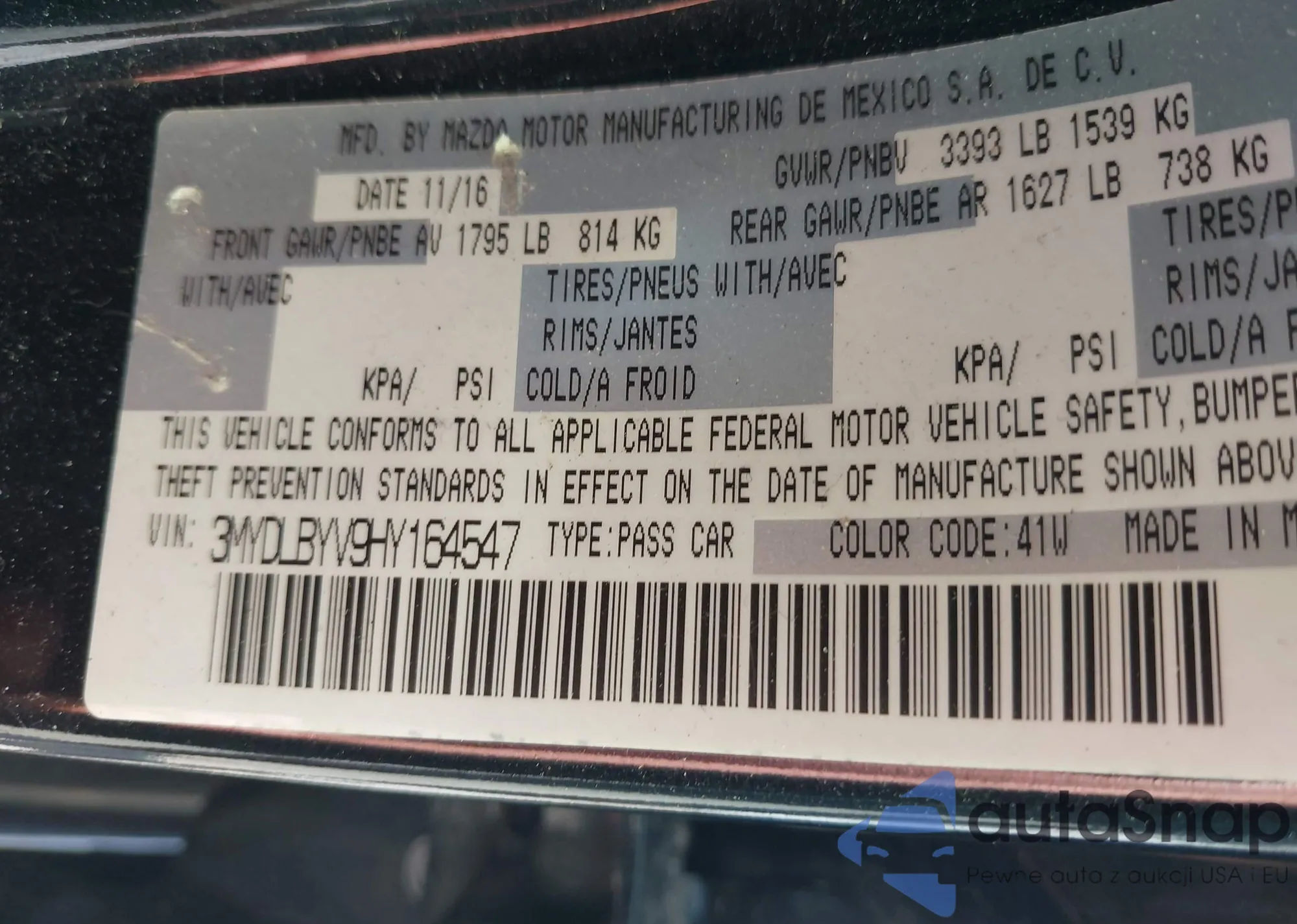 LOT: 42741457 VIN: 3MYDLBYV9HY164547