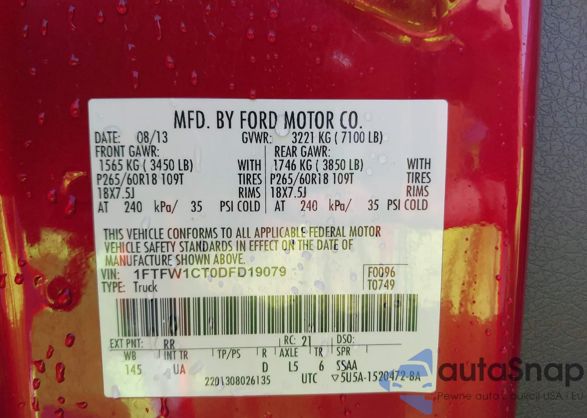 LOT: 42803117 VIN: 1FTFW1CT0DFD19079