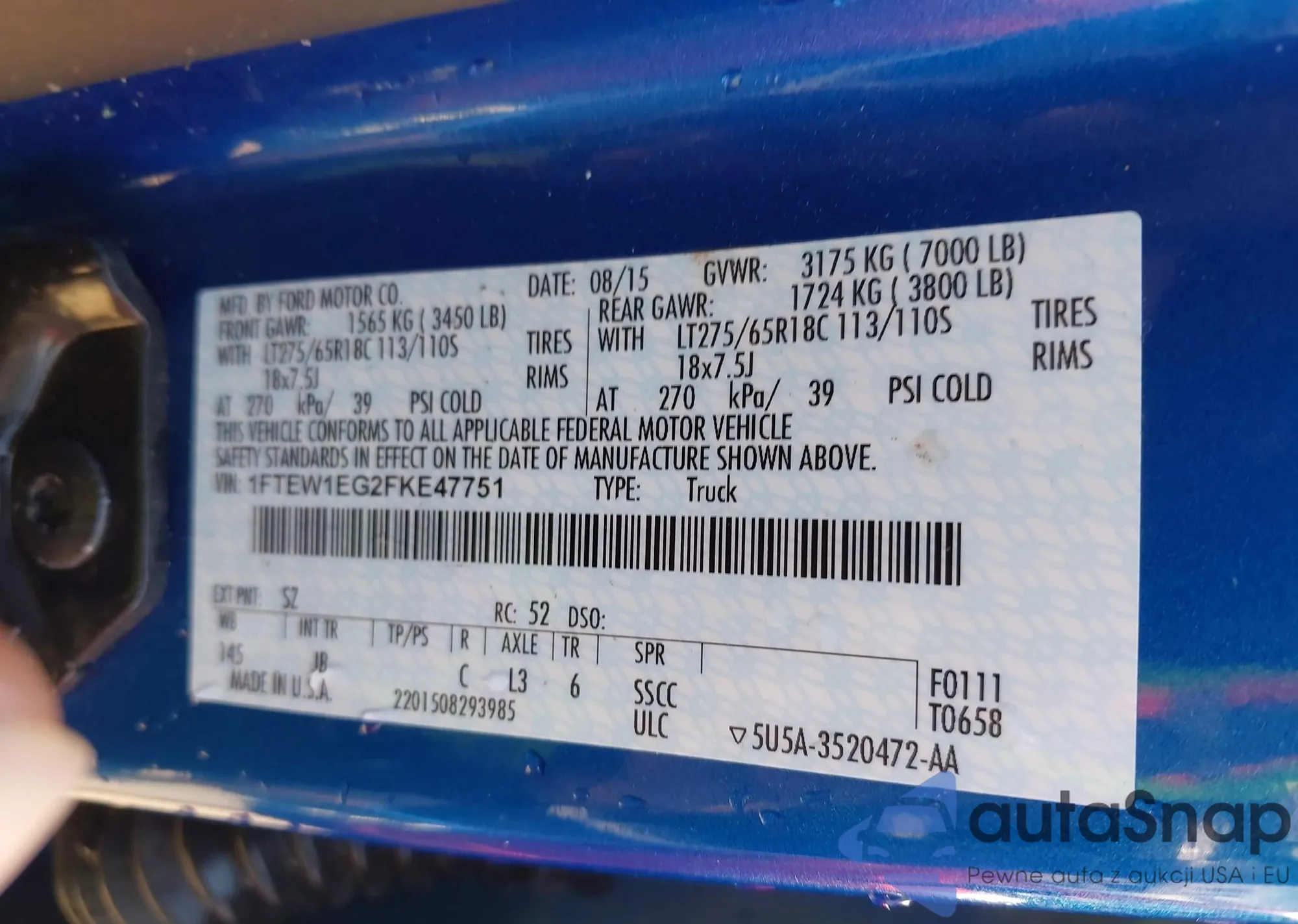 • VIN 1FTEW1EG2FKE47751