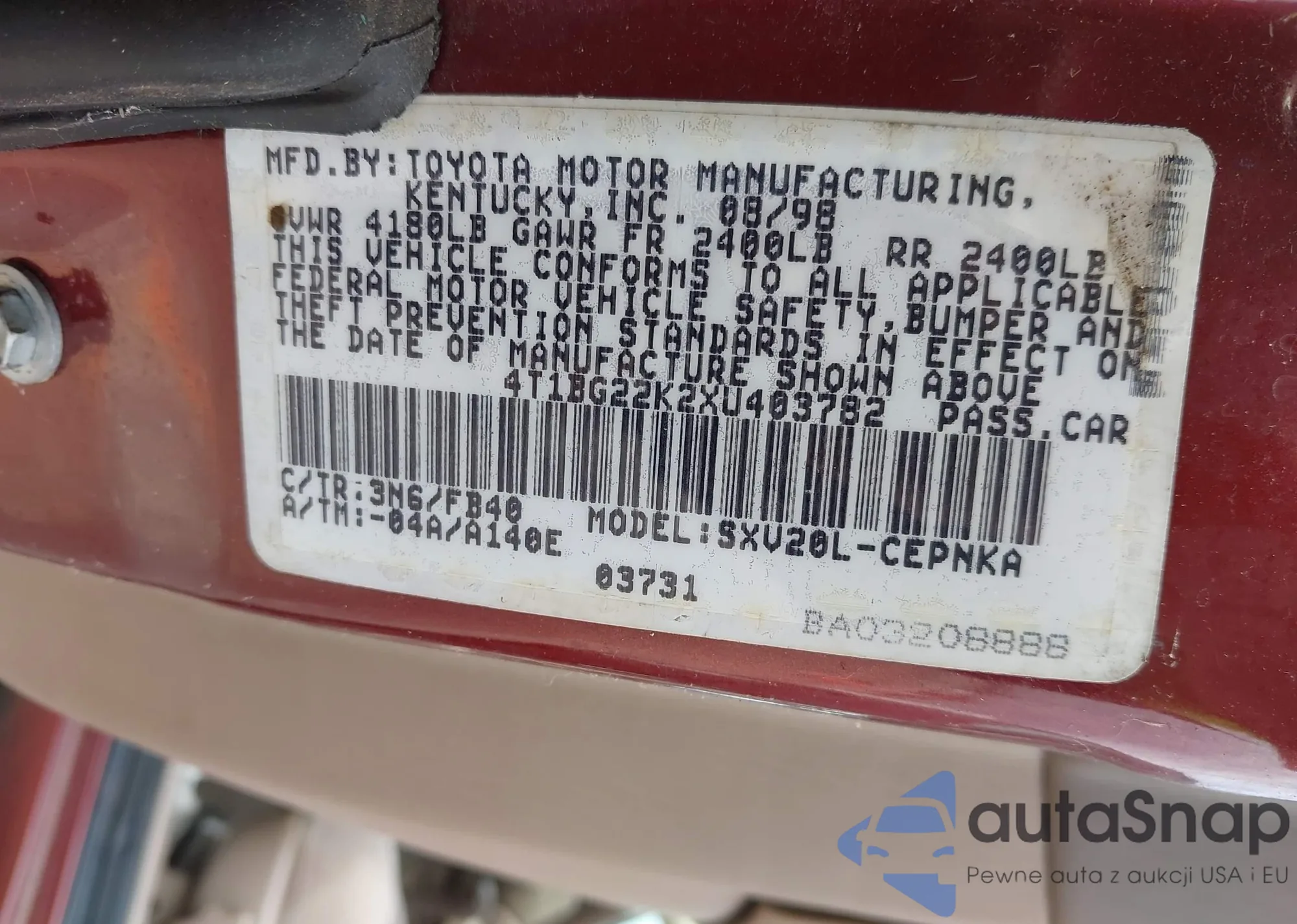 LOT: 43071853 VIN: 4T1BG22K2XU403782
