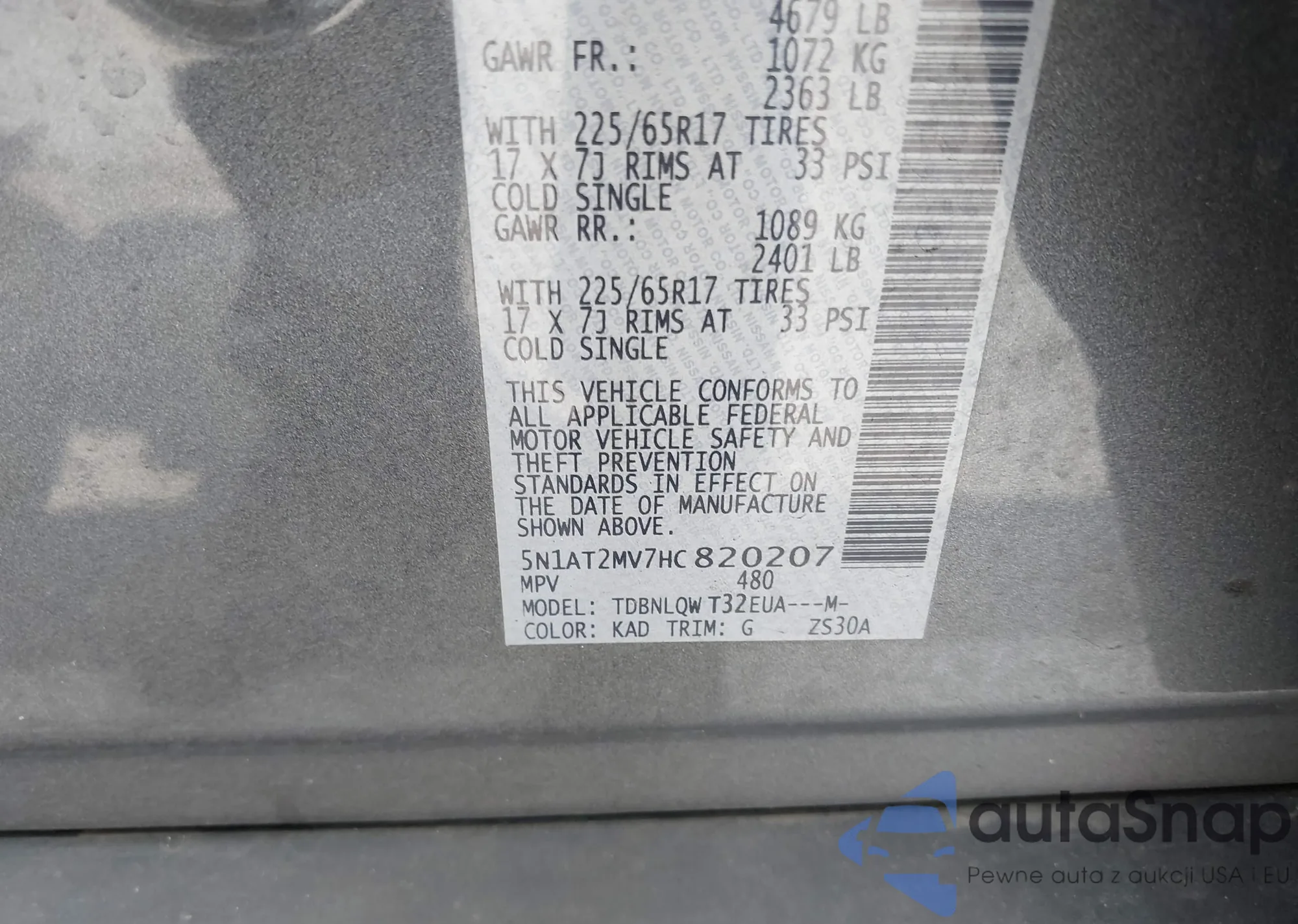 2017 Nissan Rogue Sv from USA, damaged, VIN 5N1AT2MV7HC820207