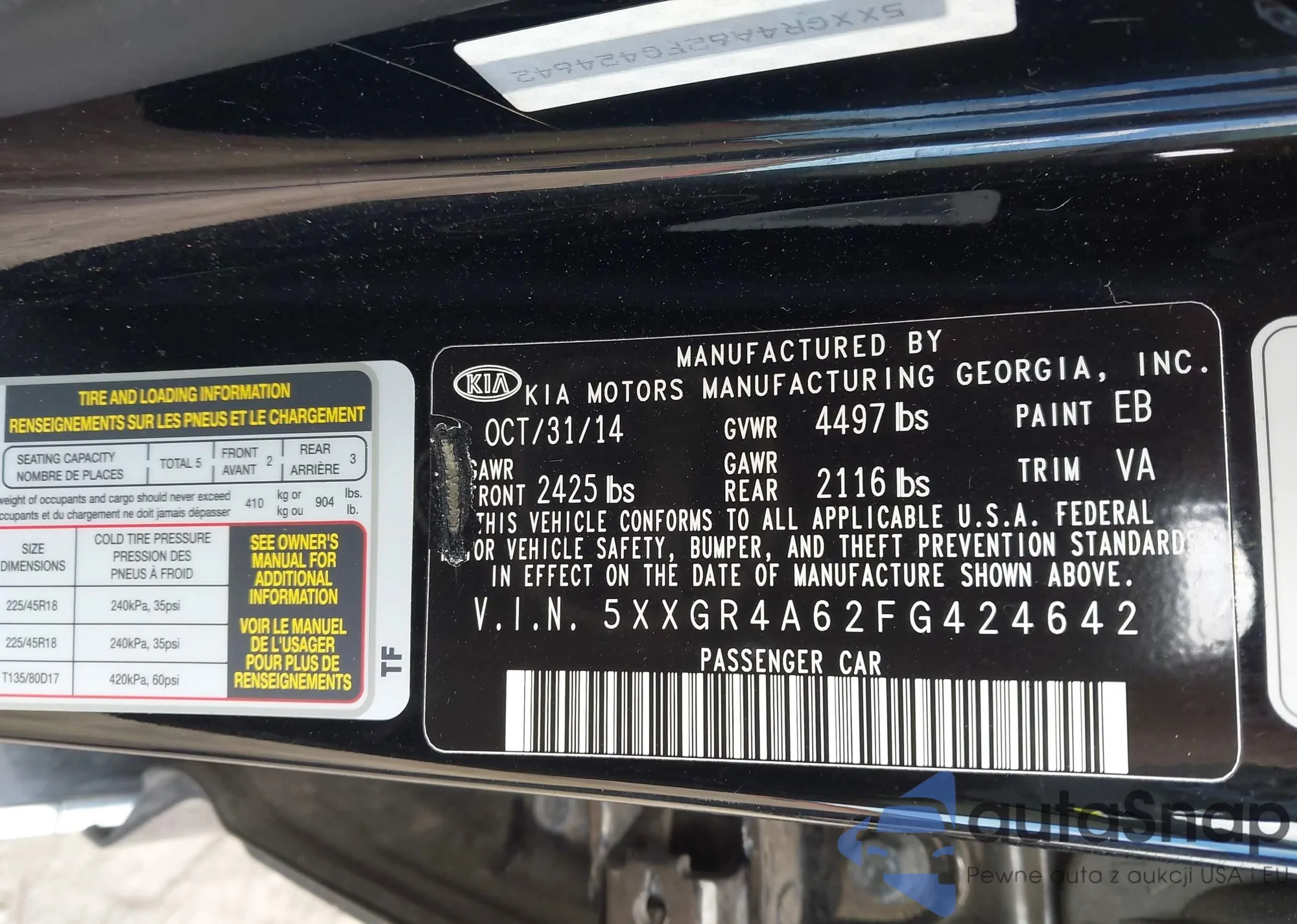 LOT: 43114475 VIN: 5XXGR4A62FG424642