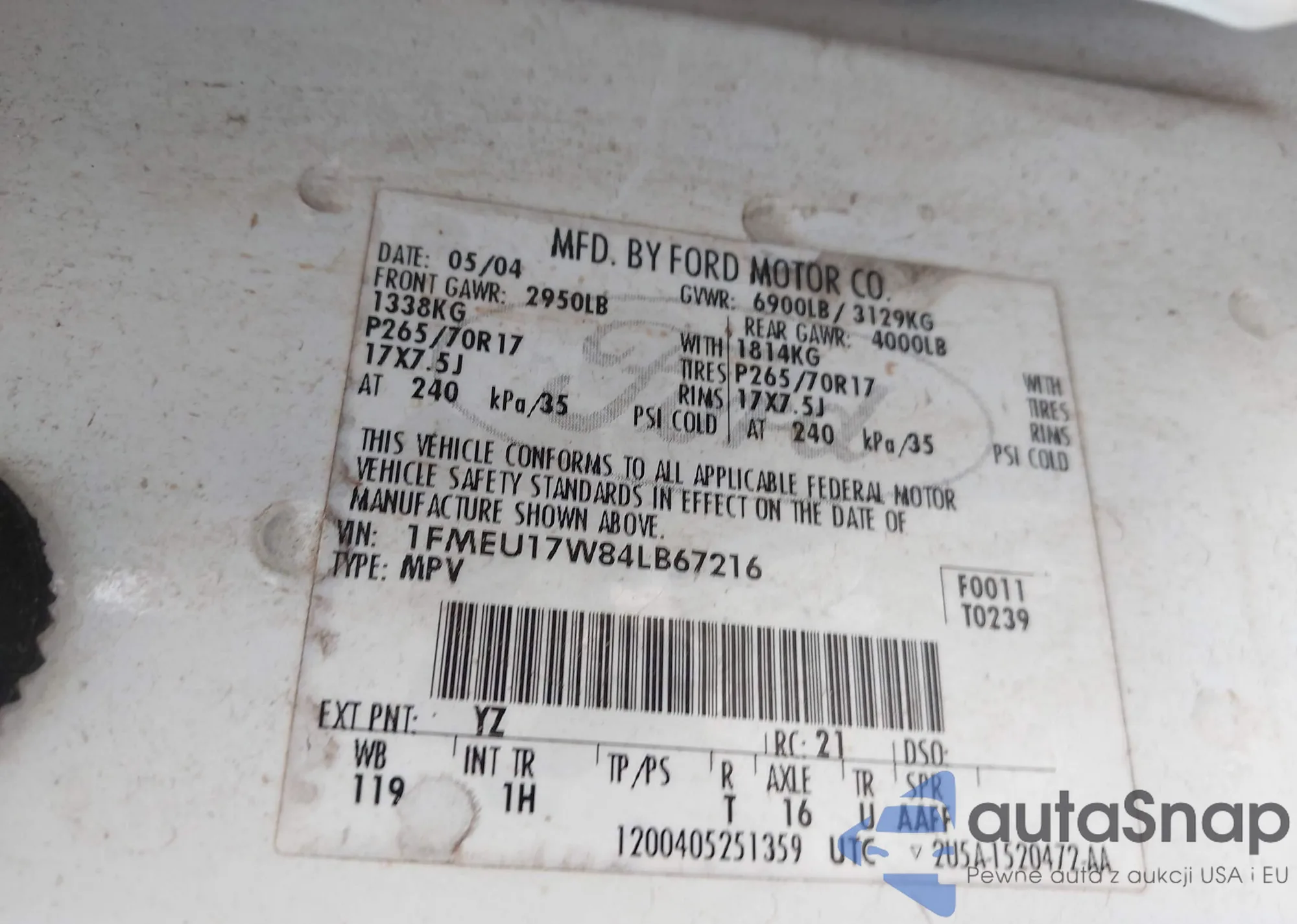 • VIN 1FMEU17W84LB67216