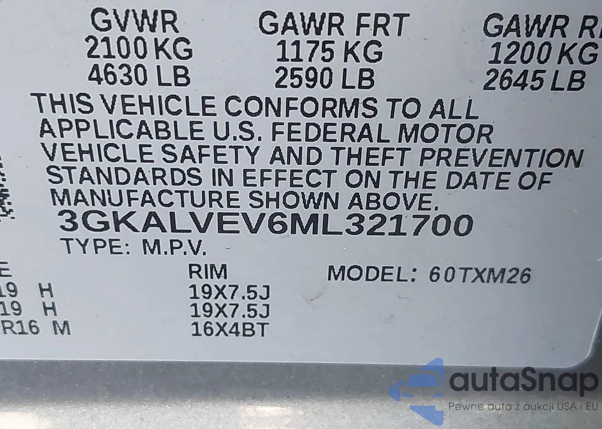 • VIN 3GKALVEV6ML321700