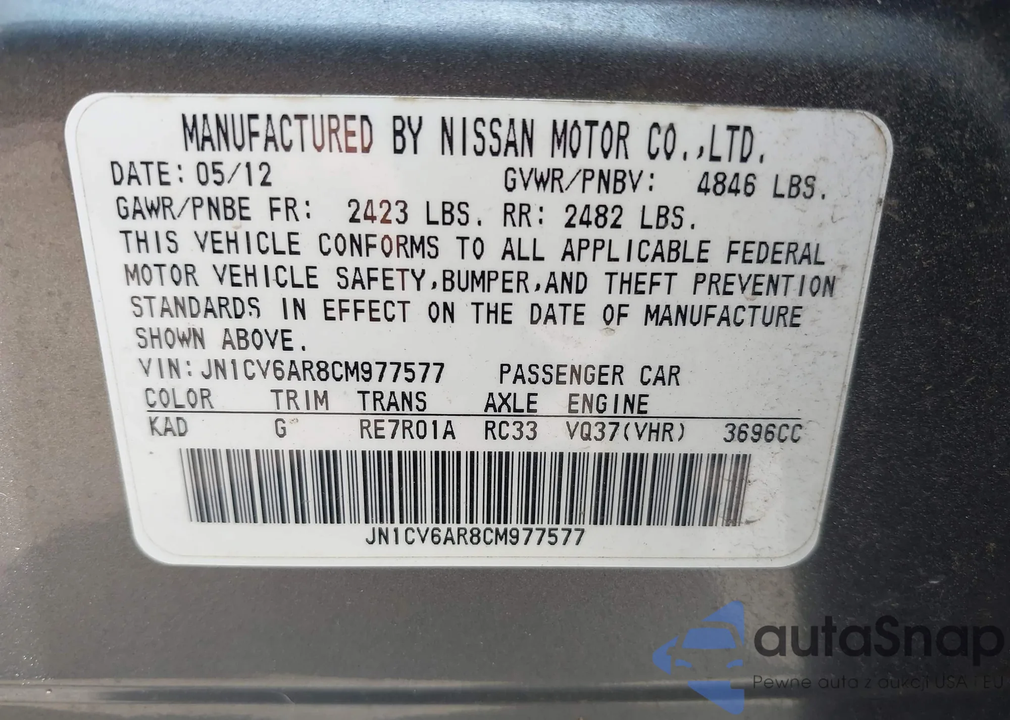 LOT: 42884594 VIN: JTDKN3DU8B5307334