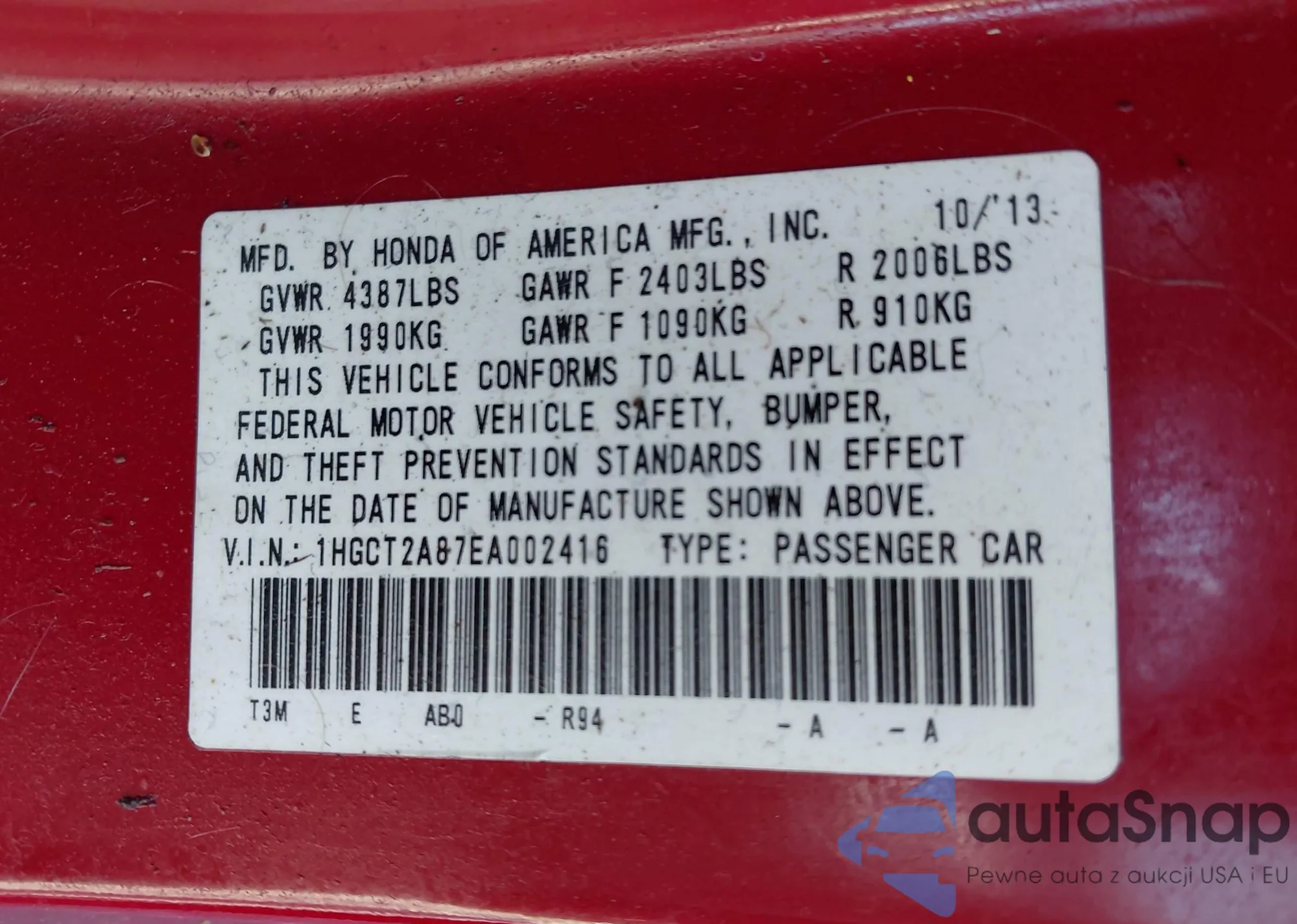 • VIN 2HGFB2F54DH563350