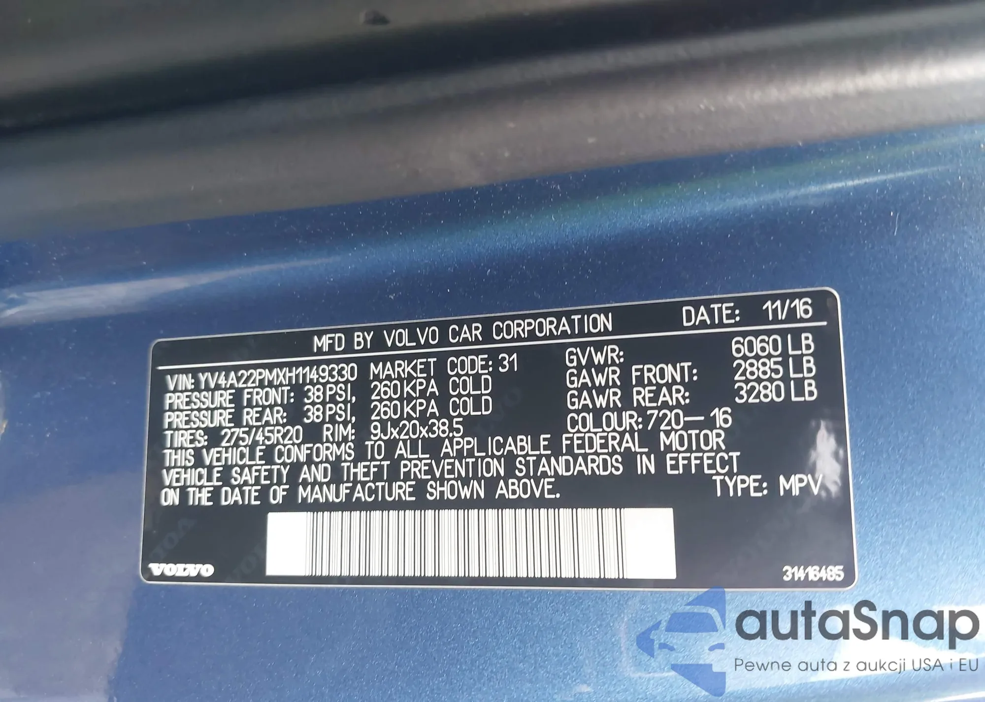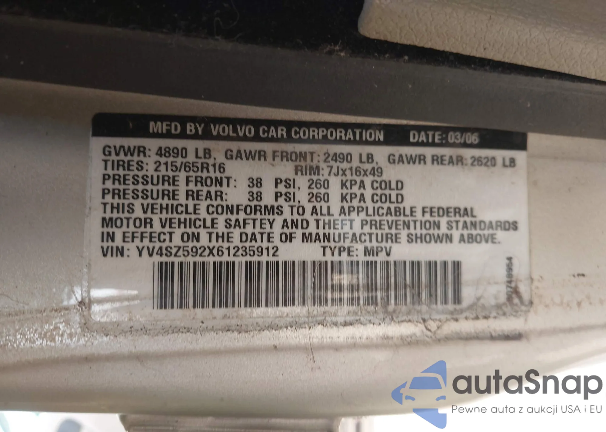 • VIN YV4SZ592X61235912