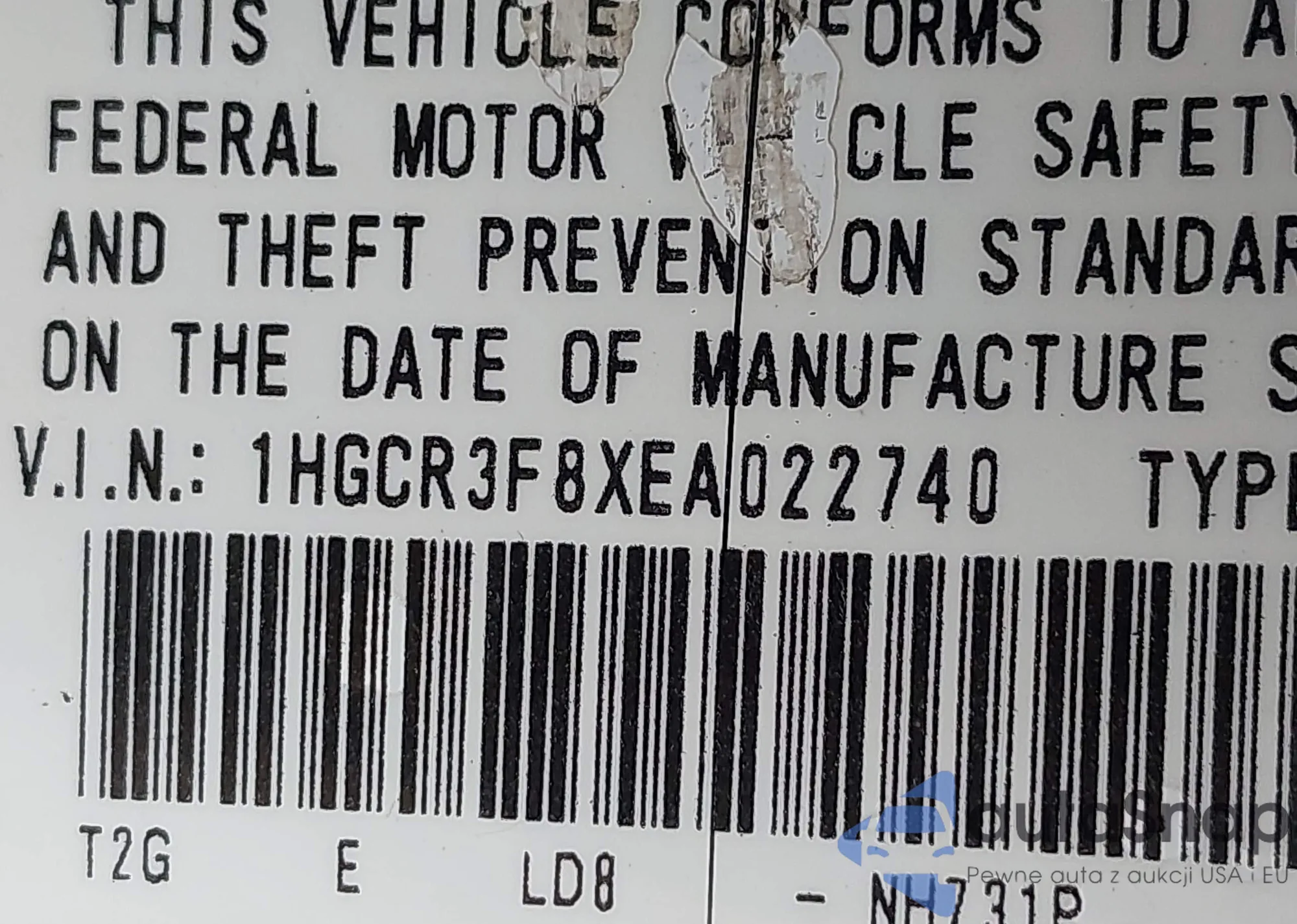 LOT: 42739530 VIN: 1HGCR3F8XEA022740