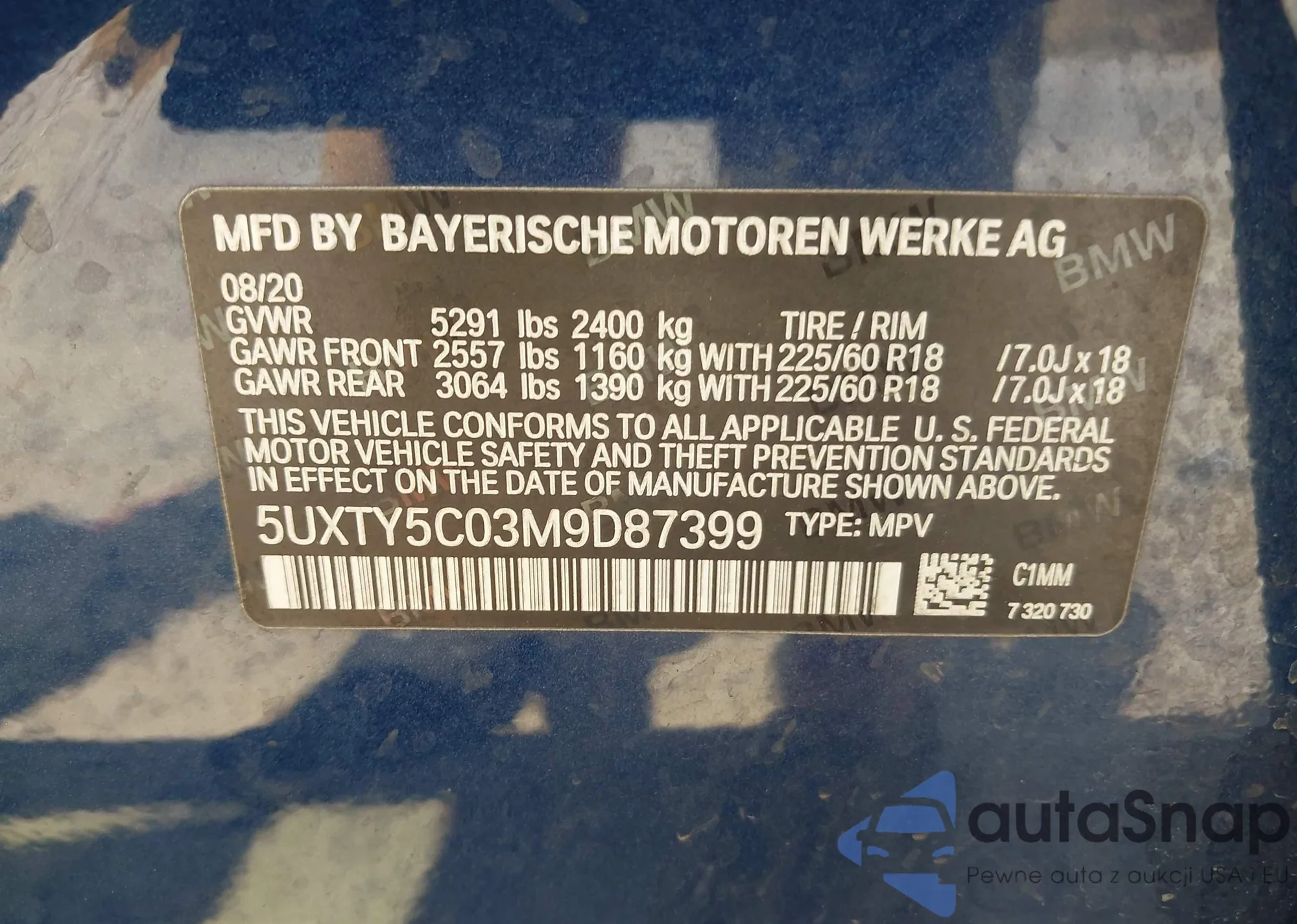 LOT: 42891359 VIN: 5UXTY5C03M9D87399