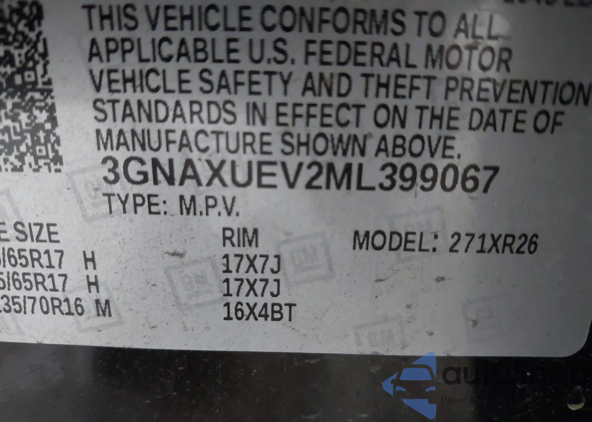 LOT: 42982879 VIN: 3GNAXUEV2ML399067