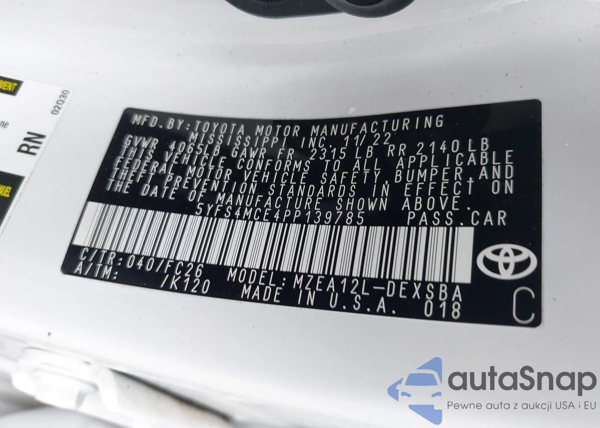 • VIN 4T1AZ1FB9LU055175