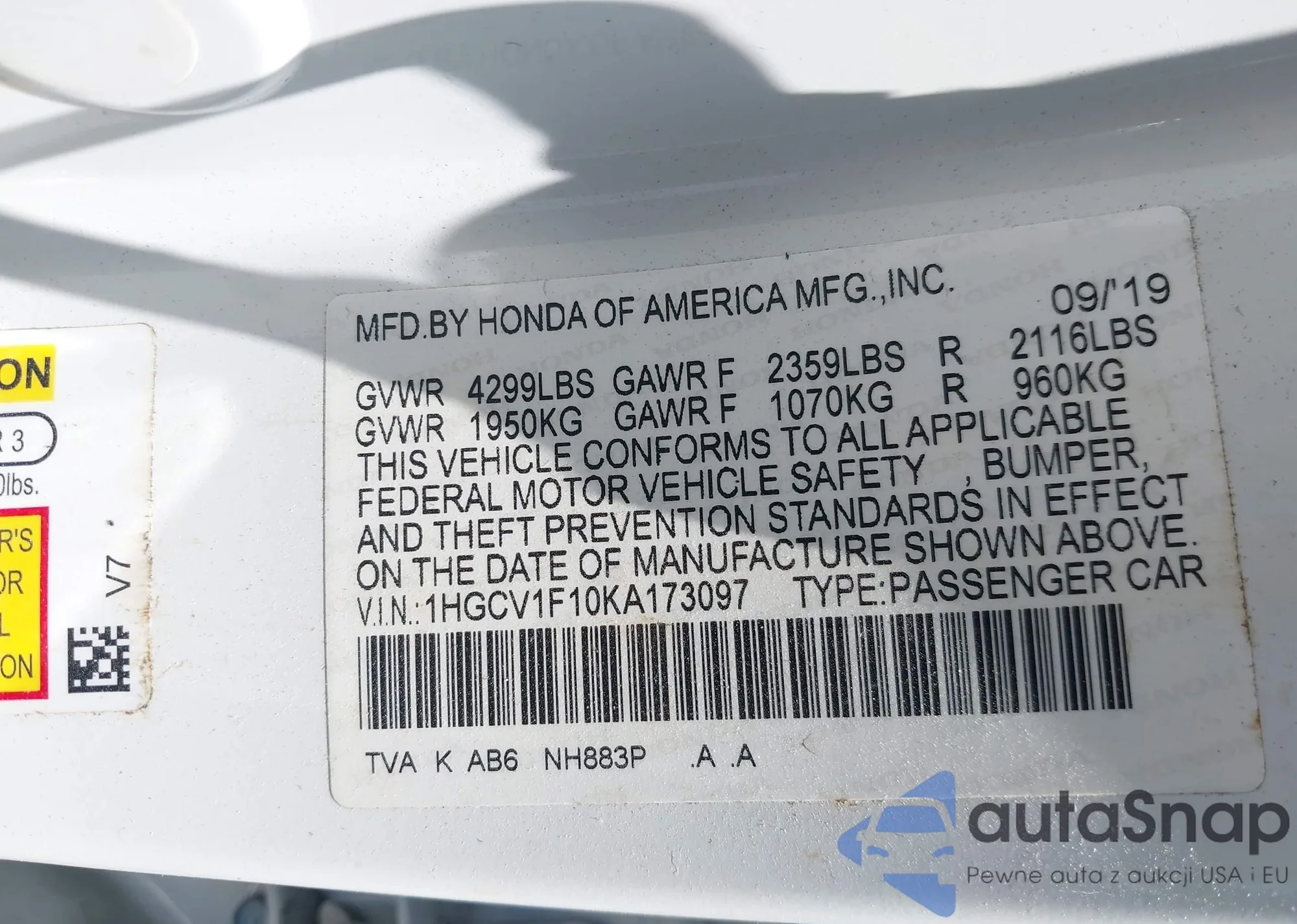 LOT: 42990577 VIN: 2HGFB2F56DH550390