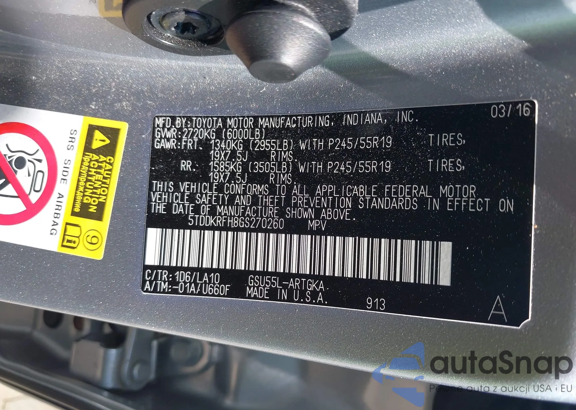 LOT: 42702373 VIN: 5TDDKRFH8GS270260