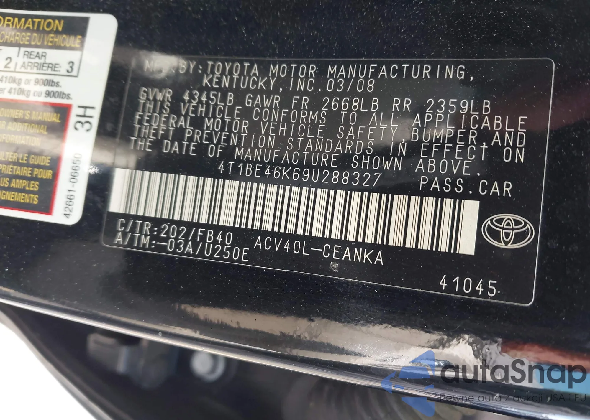 LOT: 43253272 VIN: 4T1BE46K69U288327