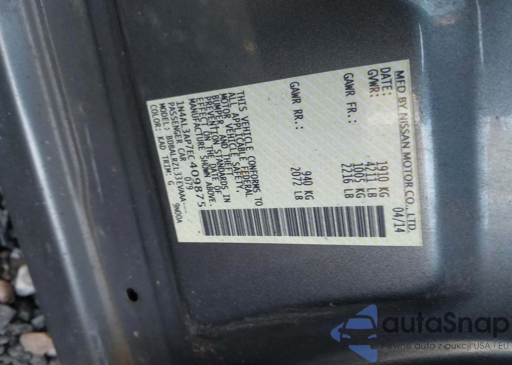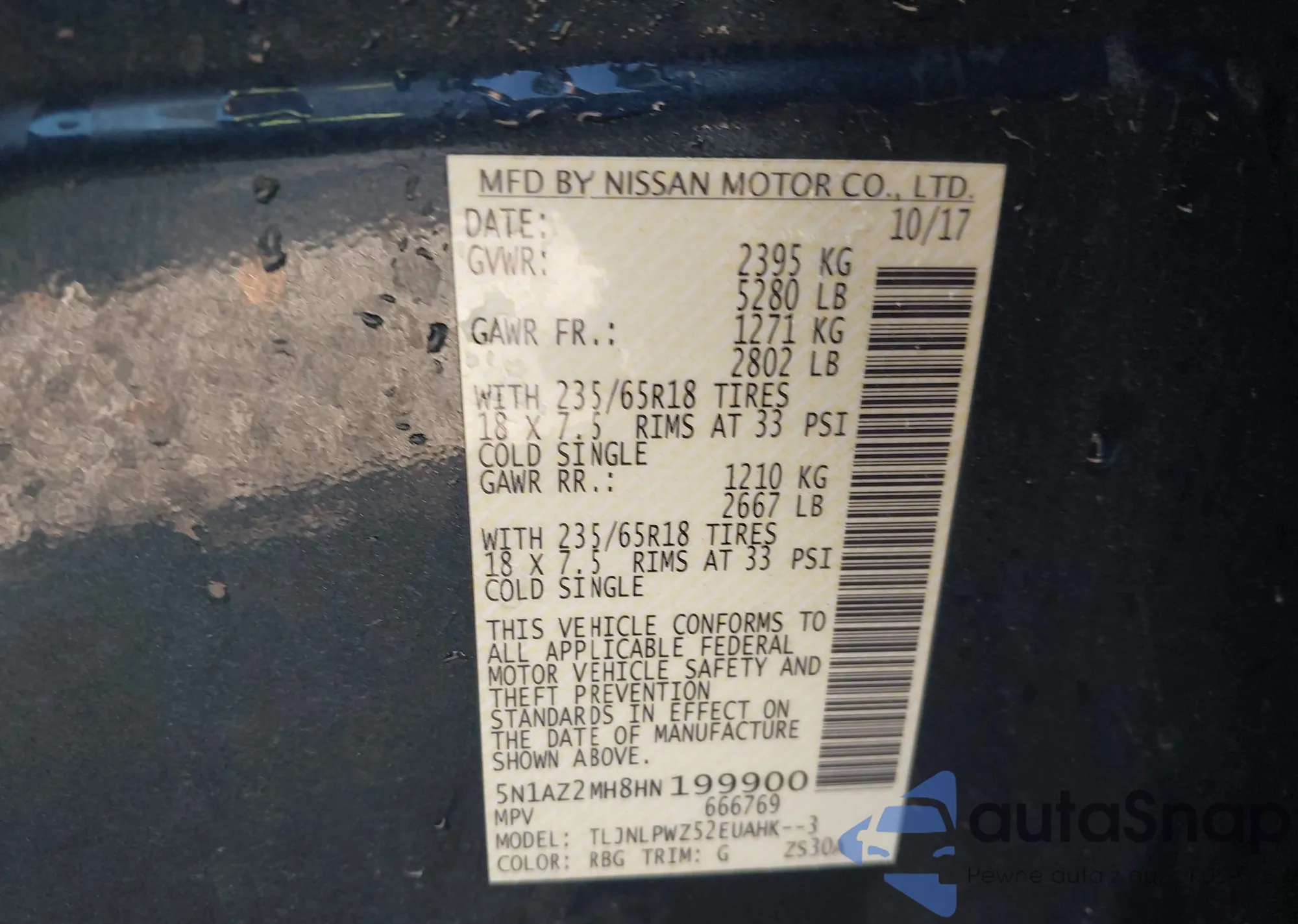 LOT: 43177172 VIN: JN8AF5MV6CT125341