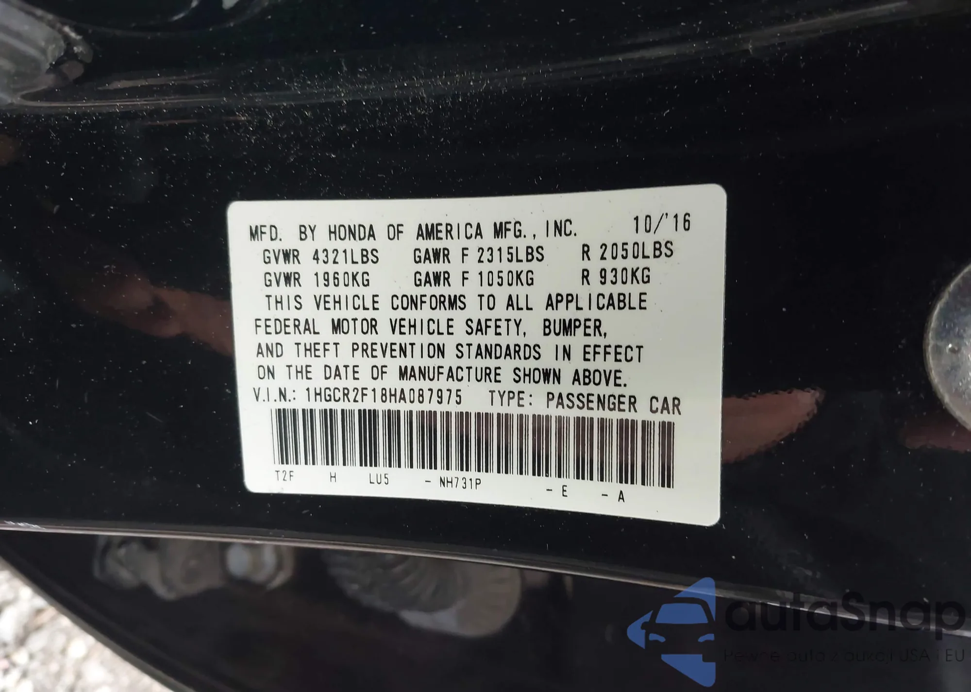 LOT: 43171927 VIN: 1HGCR2F18HA087975