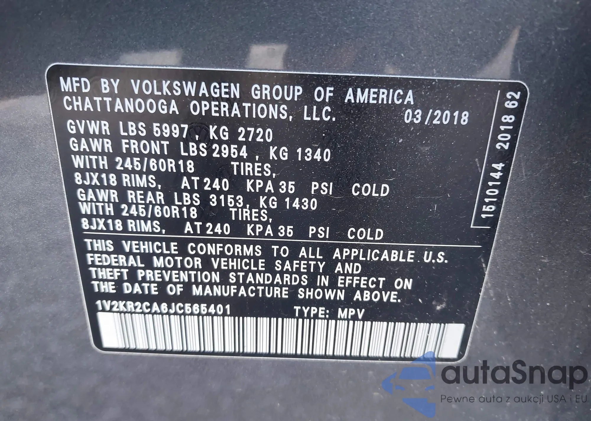 • VIN 1V2KR2CA6JC565401