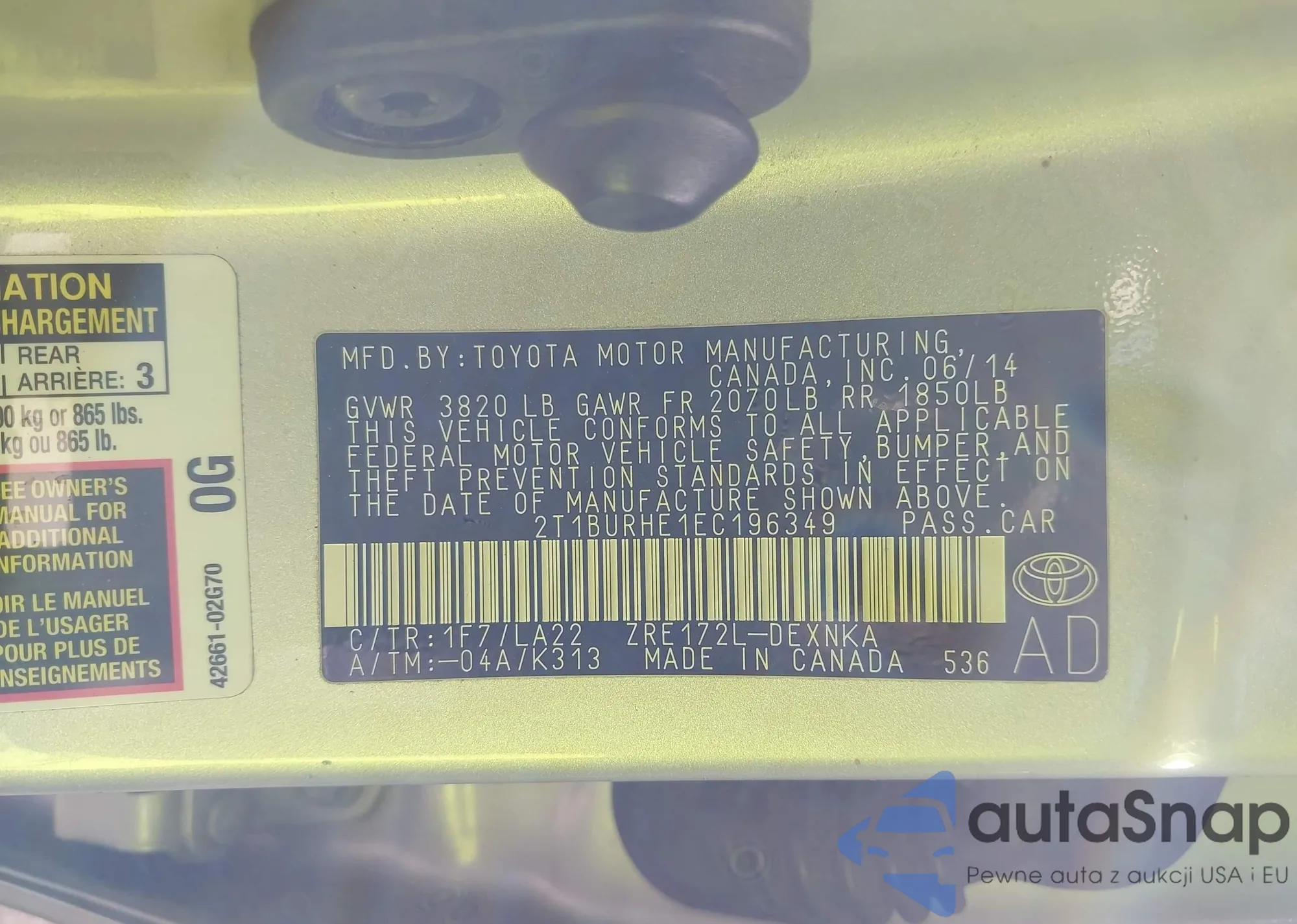 LOT: 43167408 VIN: JM1BL1VP8D1820807