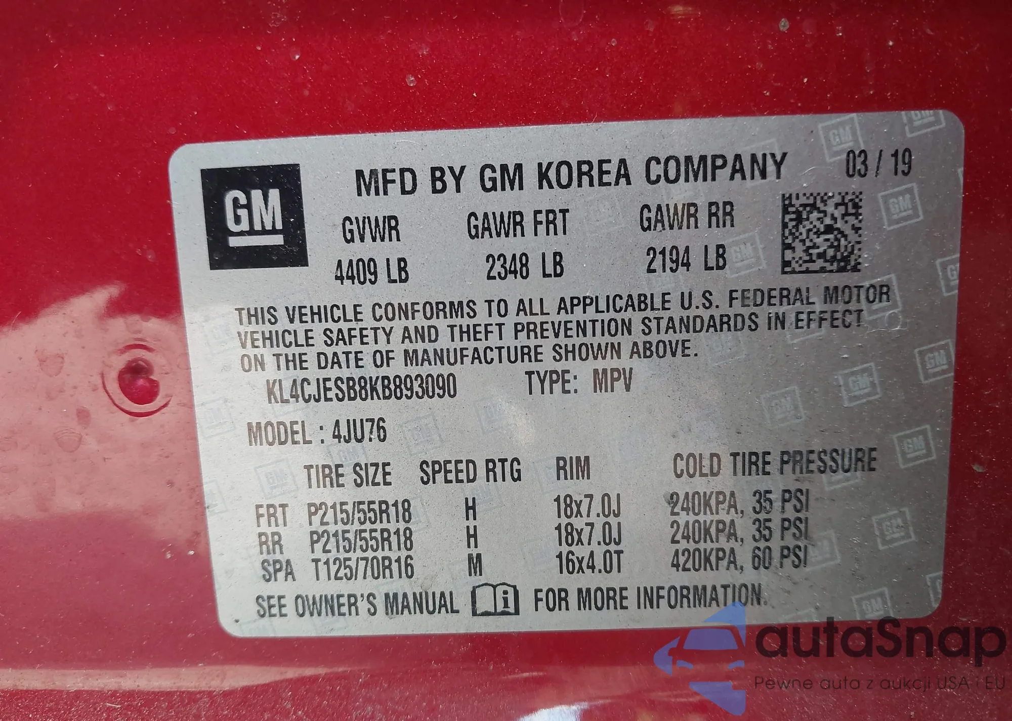 • VIN KL4CJESB8KB893090