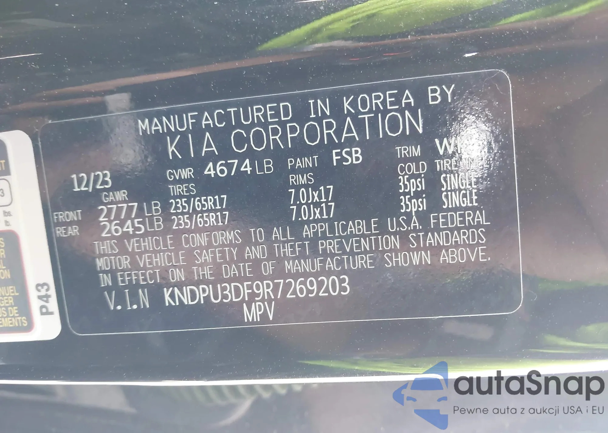 • VIN KNDPU3DF9R7269203