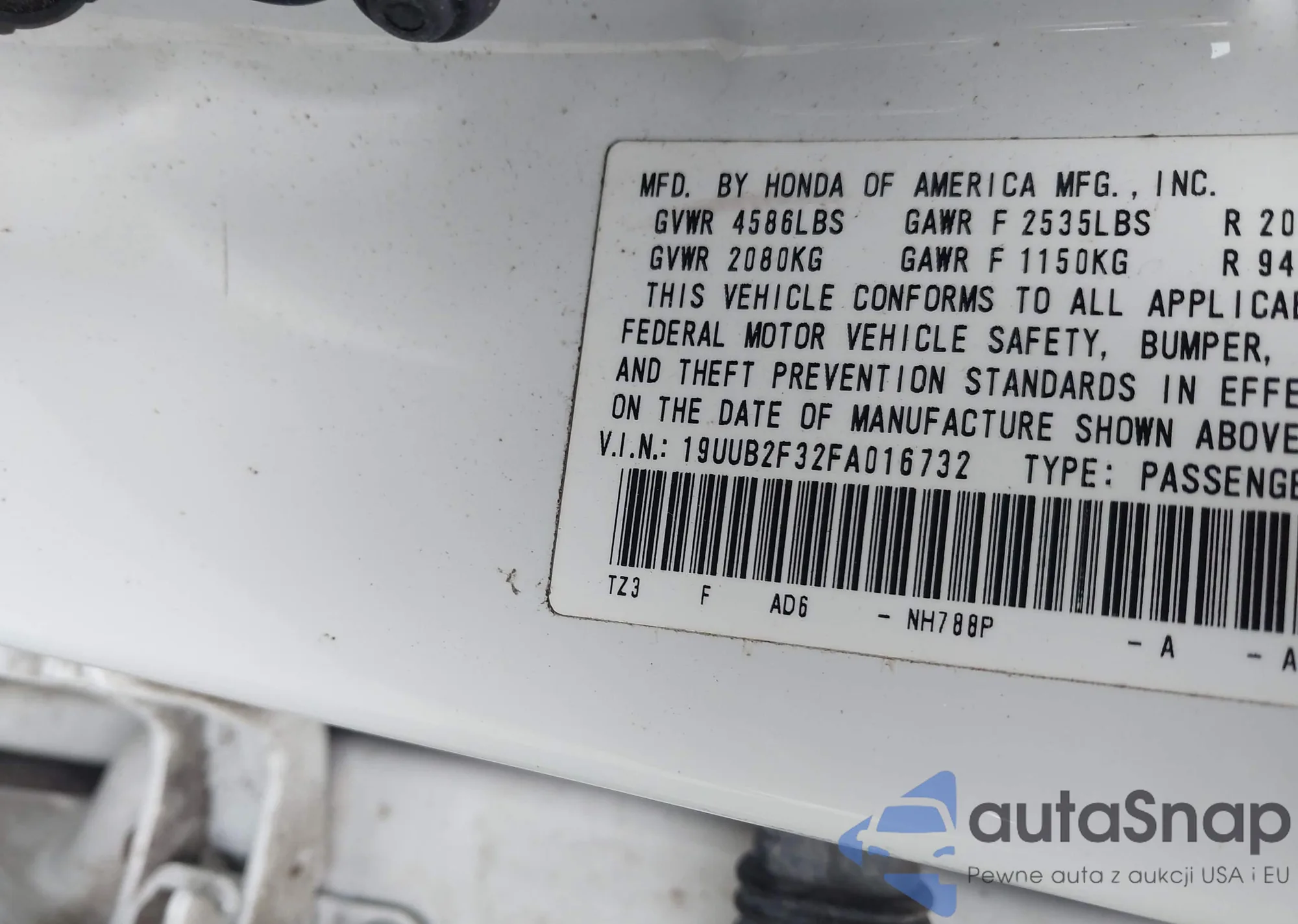 • VIN 19UUB2F32FA016732