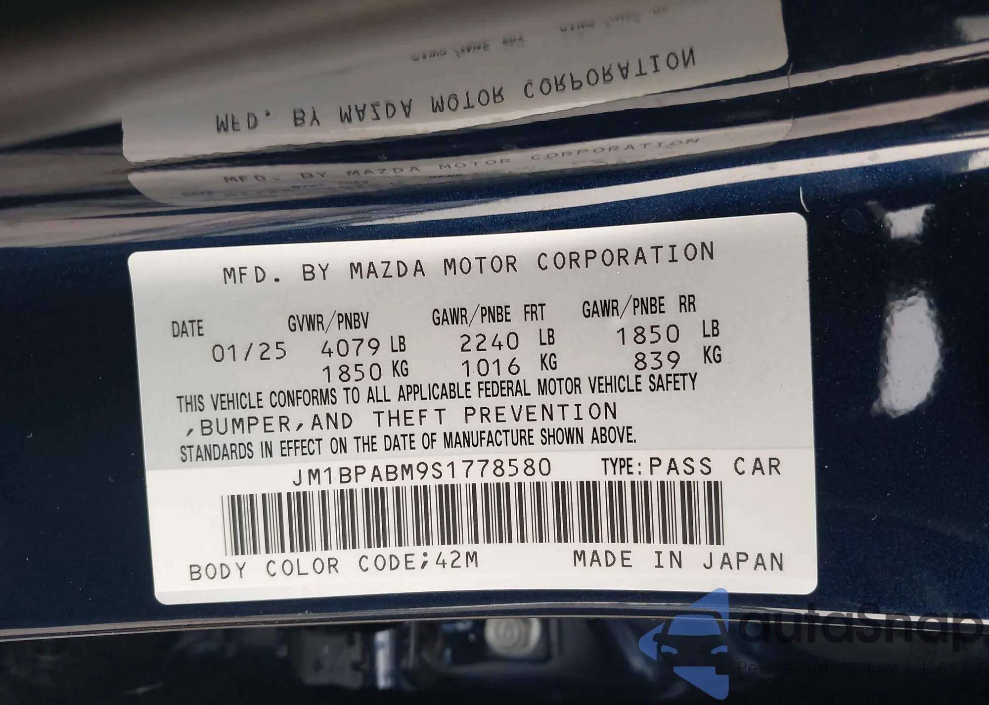 LOT: 42897275 VIN: JM1BPABM9S1778580