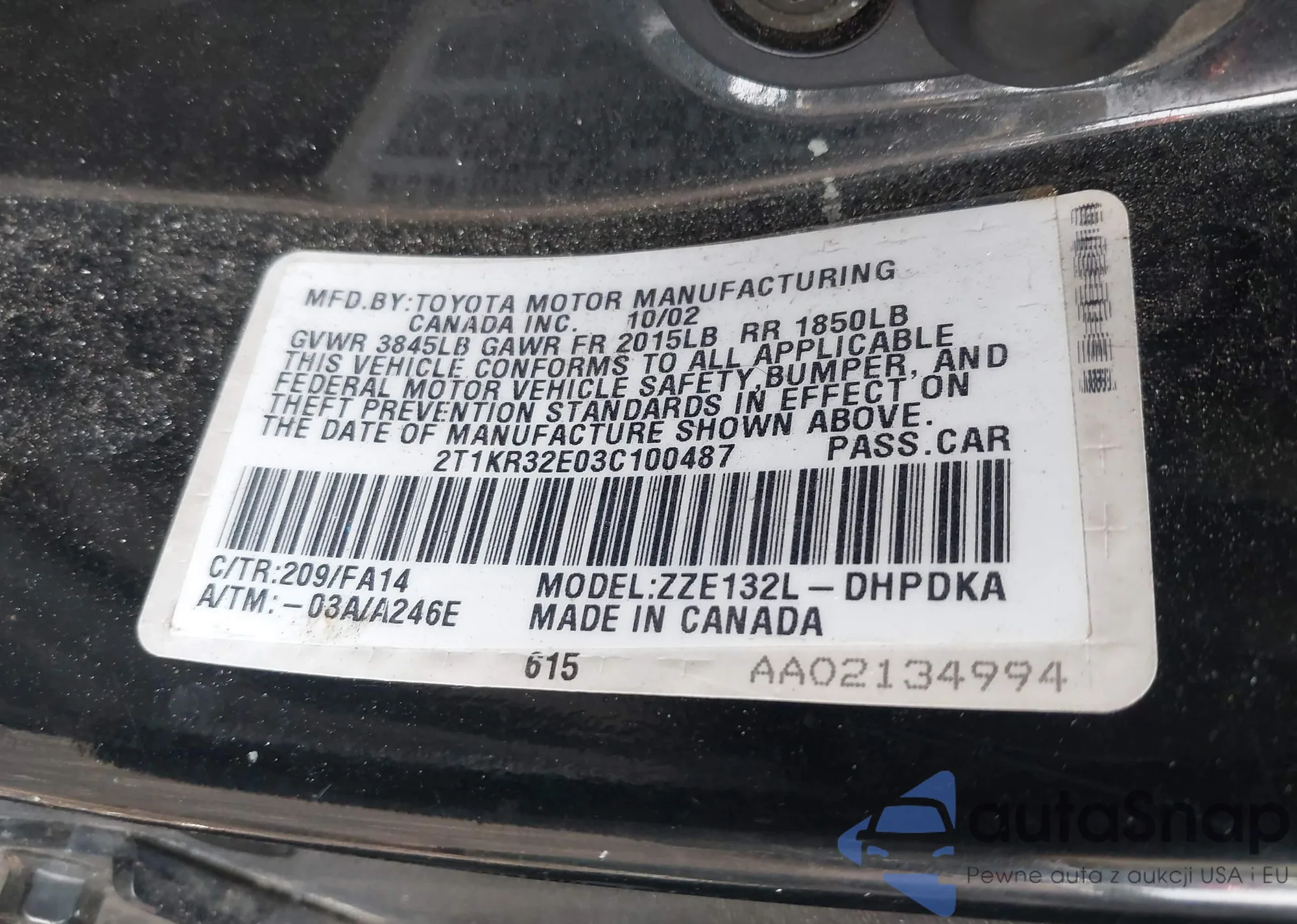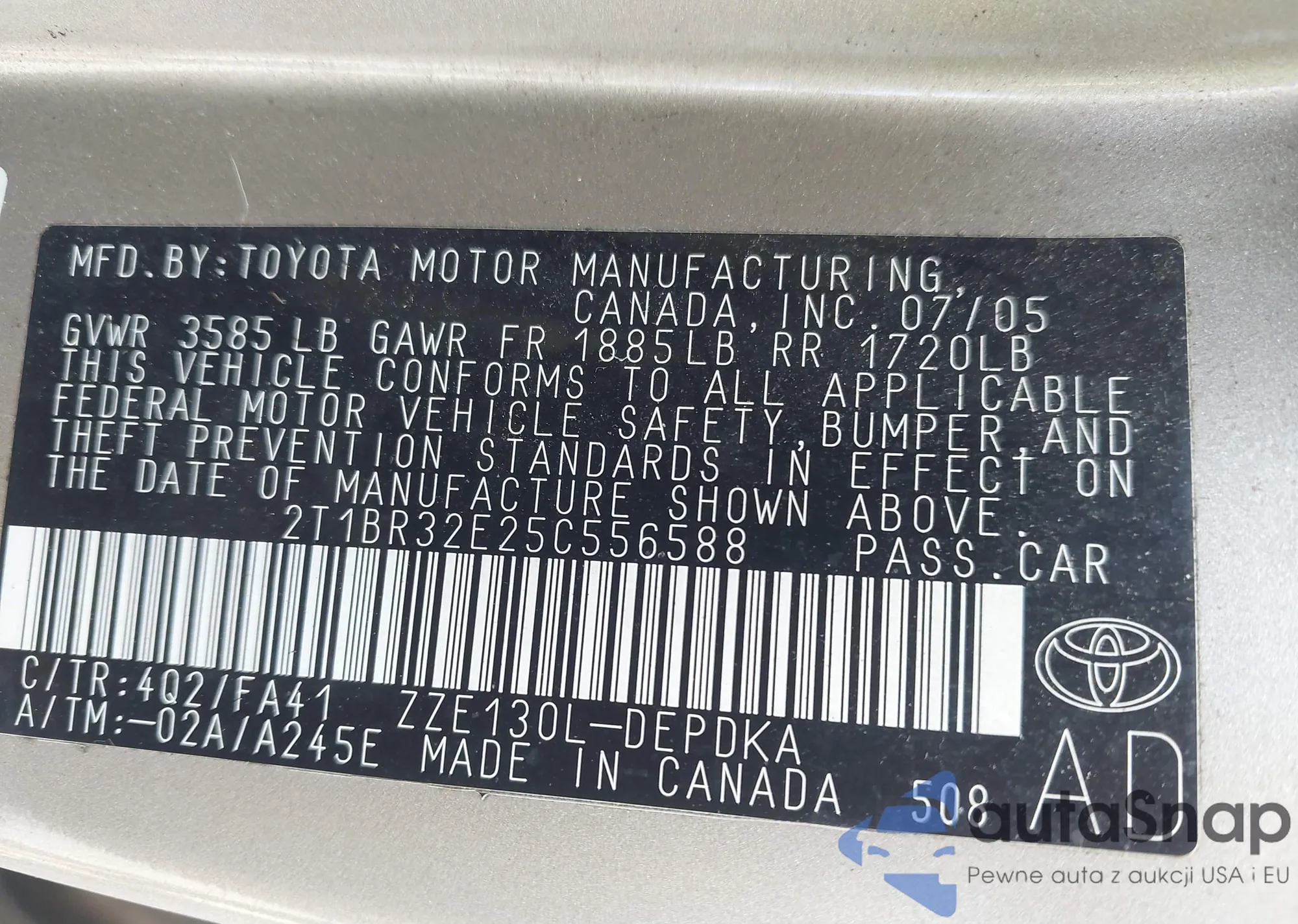 • VIN 2T1BR32E25C556588