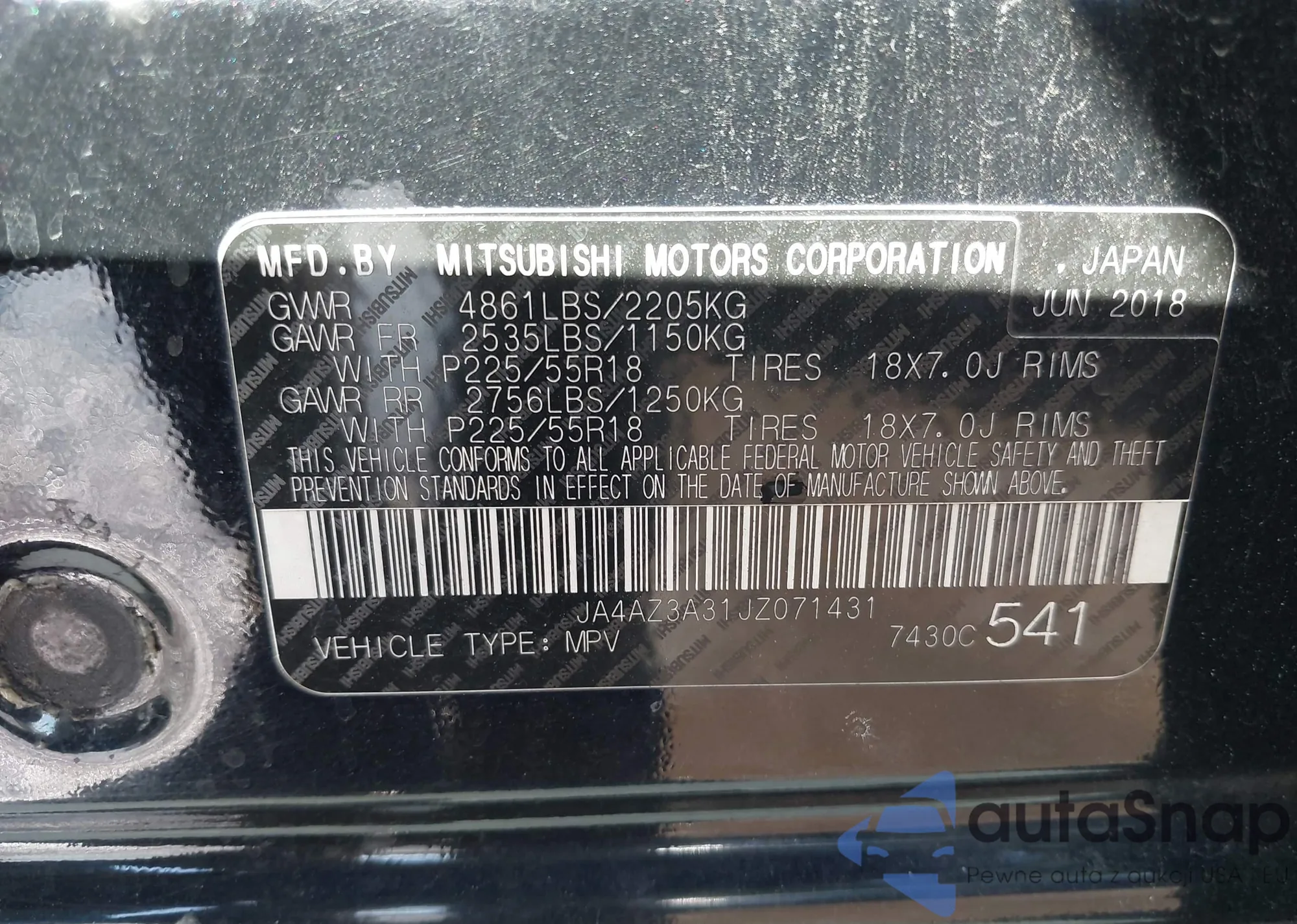 LOT: 43086002 VIN: JA4AZ3A31JZ071431