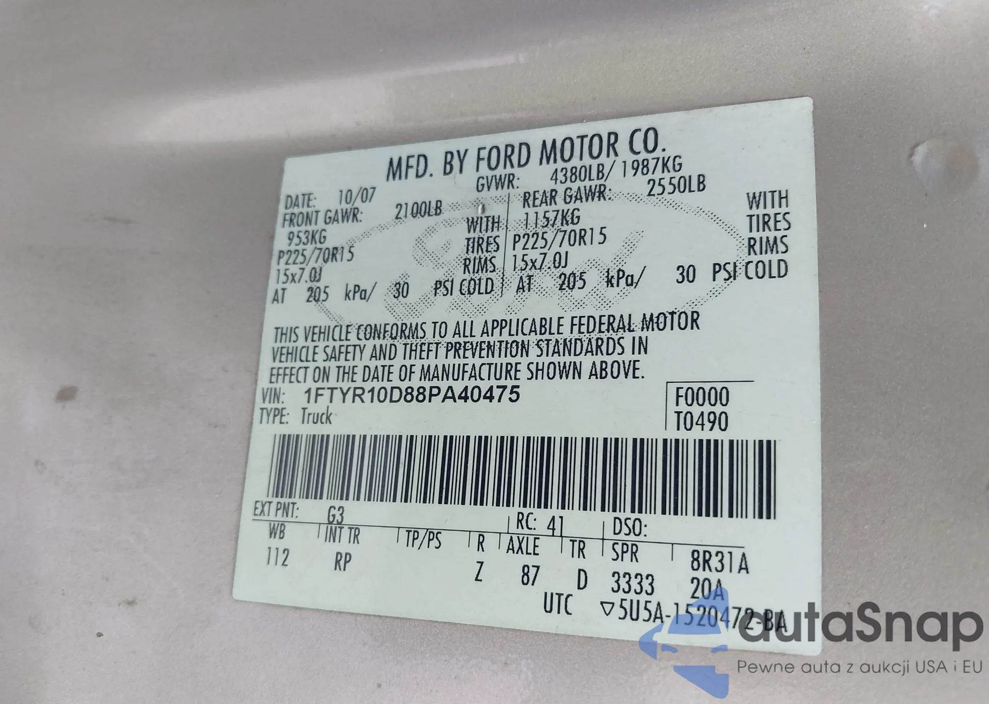 • VIN 1FTYR10D88PA40475