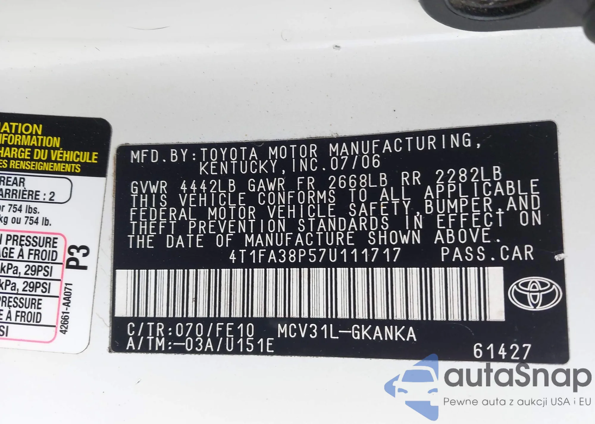 • VIN 4T1KZ1AK0NU063356