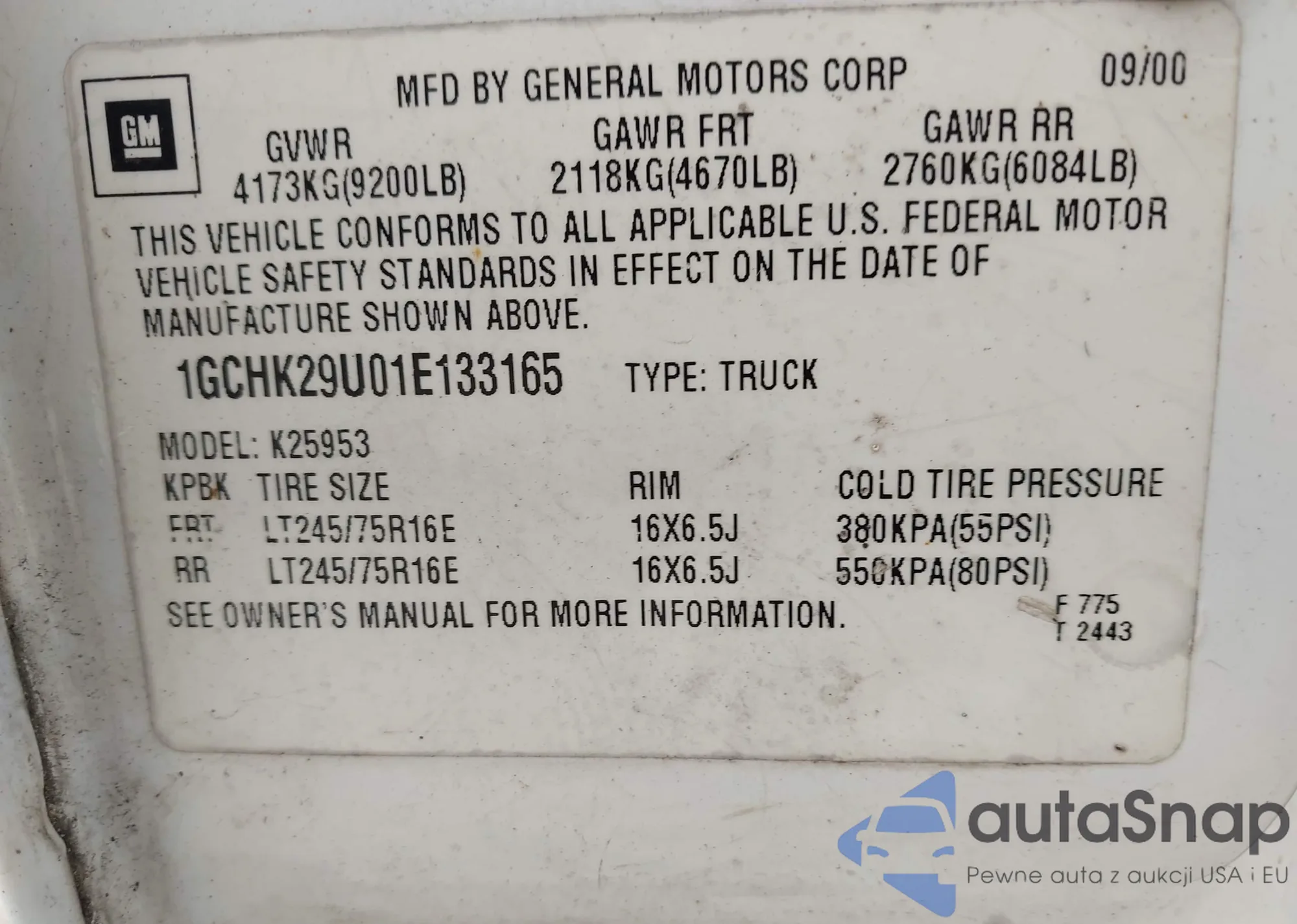 LOT: 43149651 VIN: 1GCHK29U01E133165