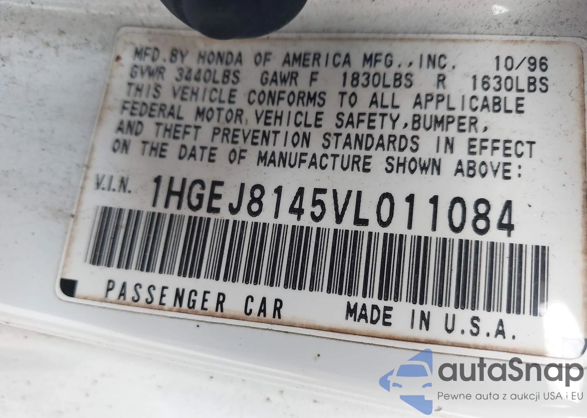 • VIN 5J6YH28706L005130