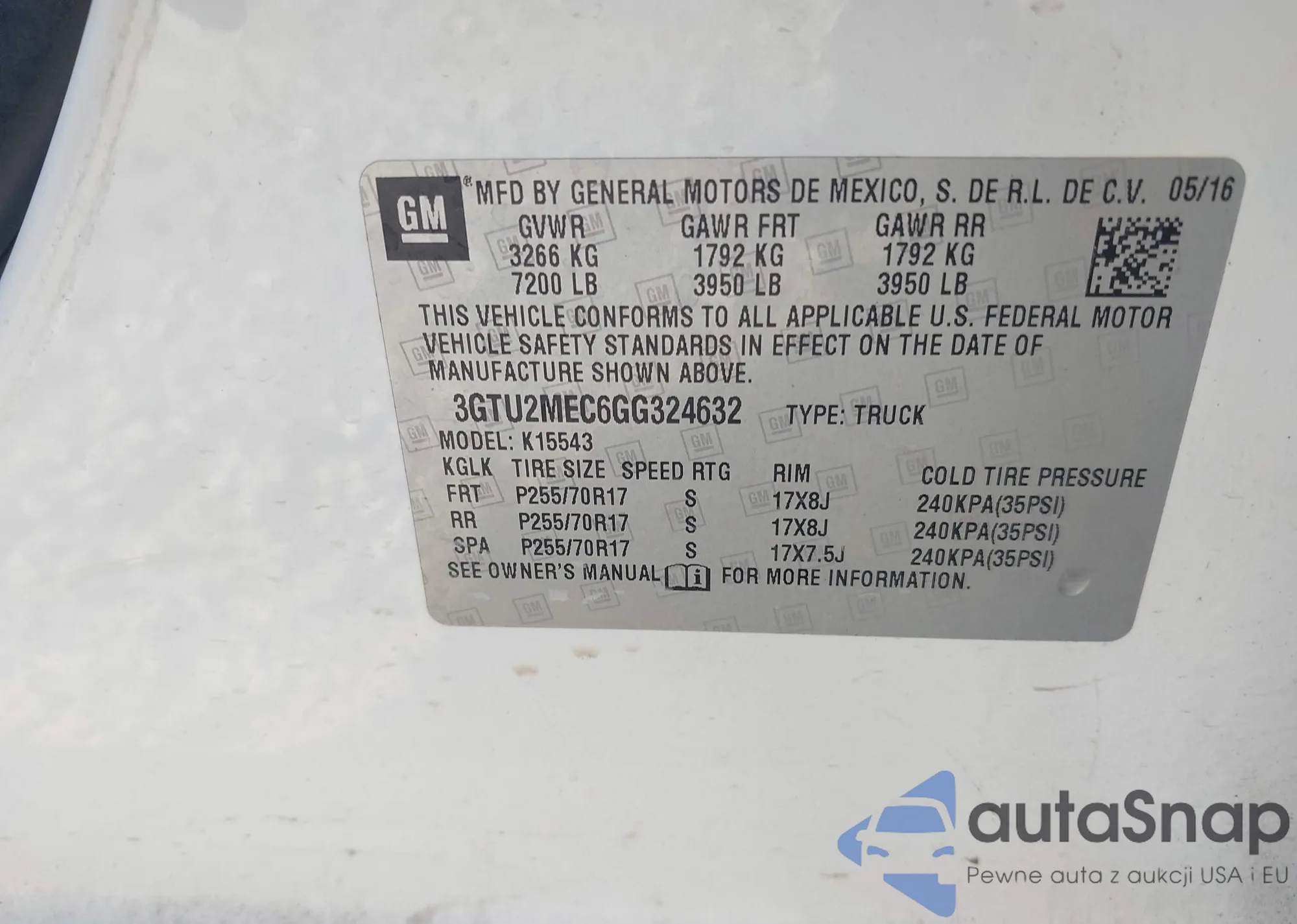 • VIN 3GTU2MEC6GG324632