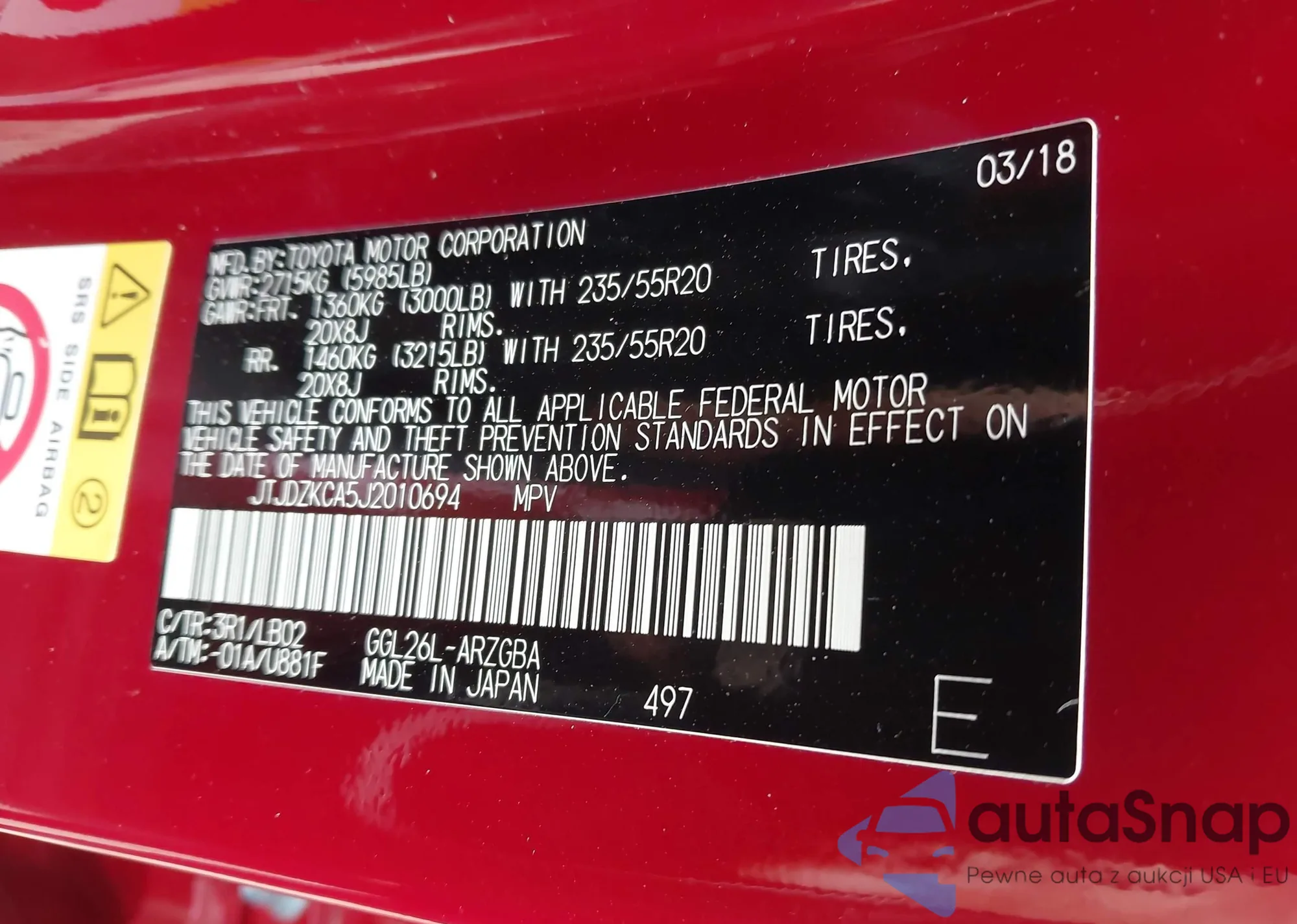 LOT: 41634853 VIN: 1C4SDJCT5JC198163
