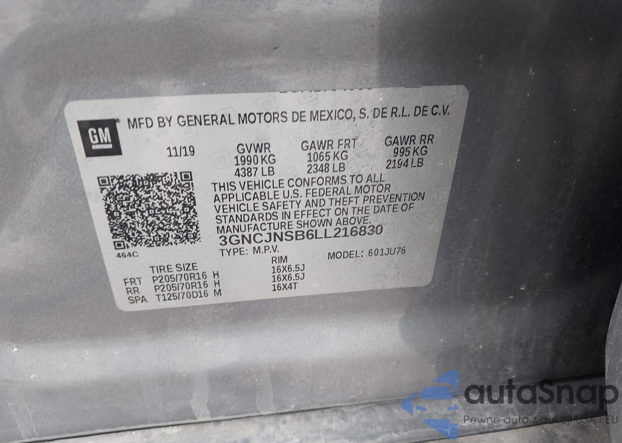 • VIN 3GNCJNSB6LL216830