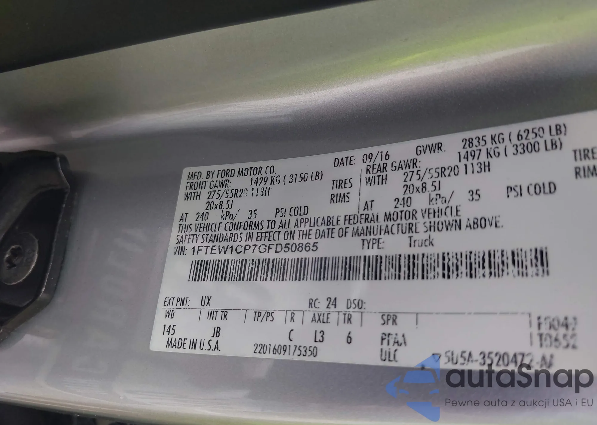 • VIN 1FTEW1CP7GFD50865