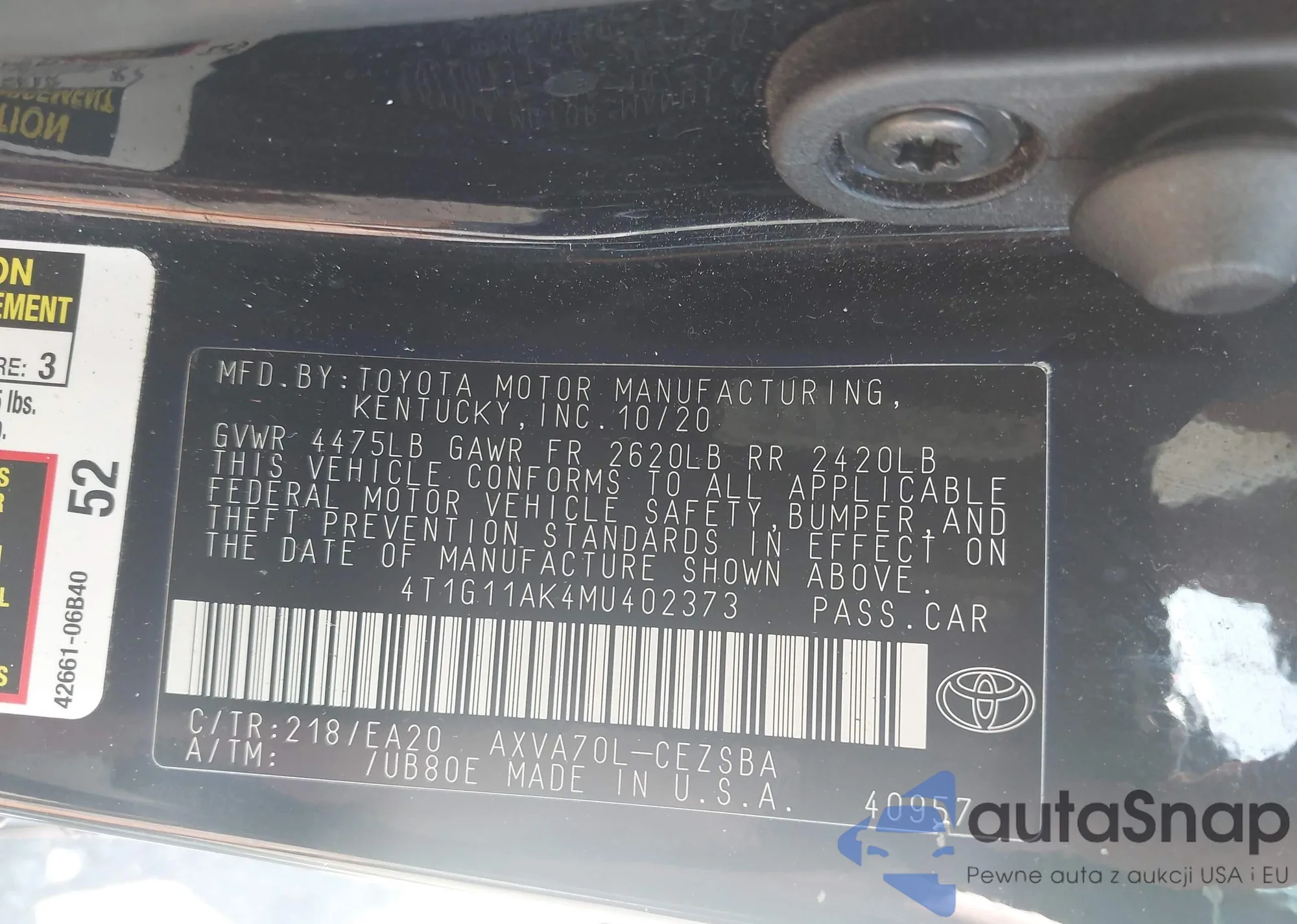 LOT: 42562008 VIN: 4T1G11AK4MU402373