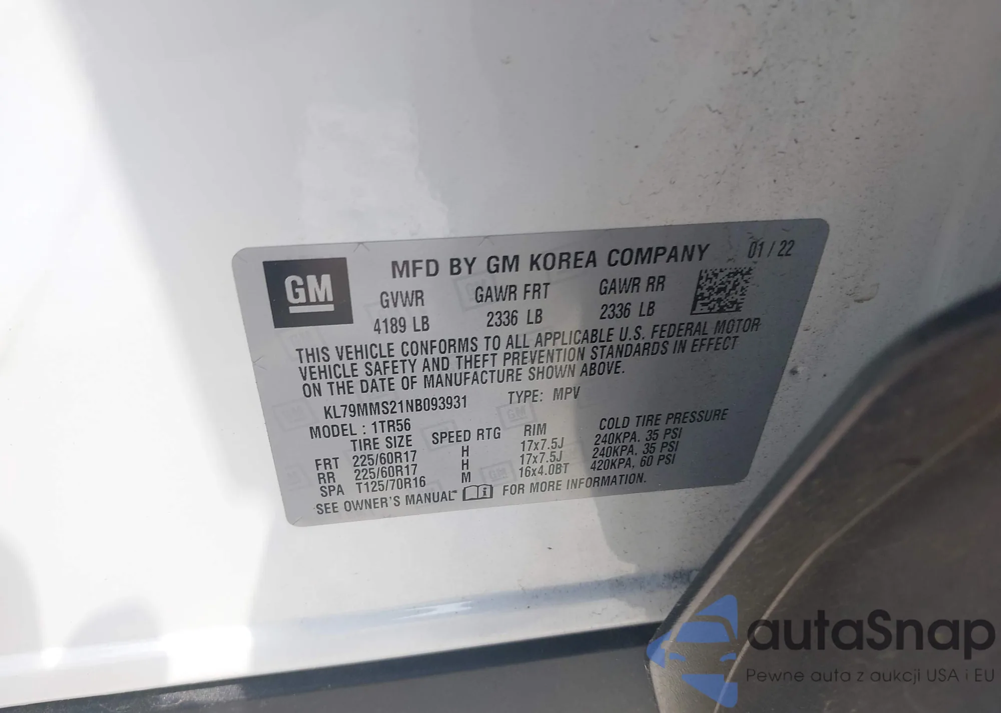 • VIN 1GKDS13SX22441421