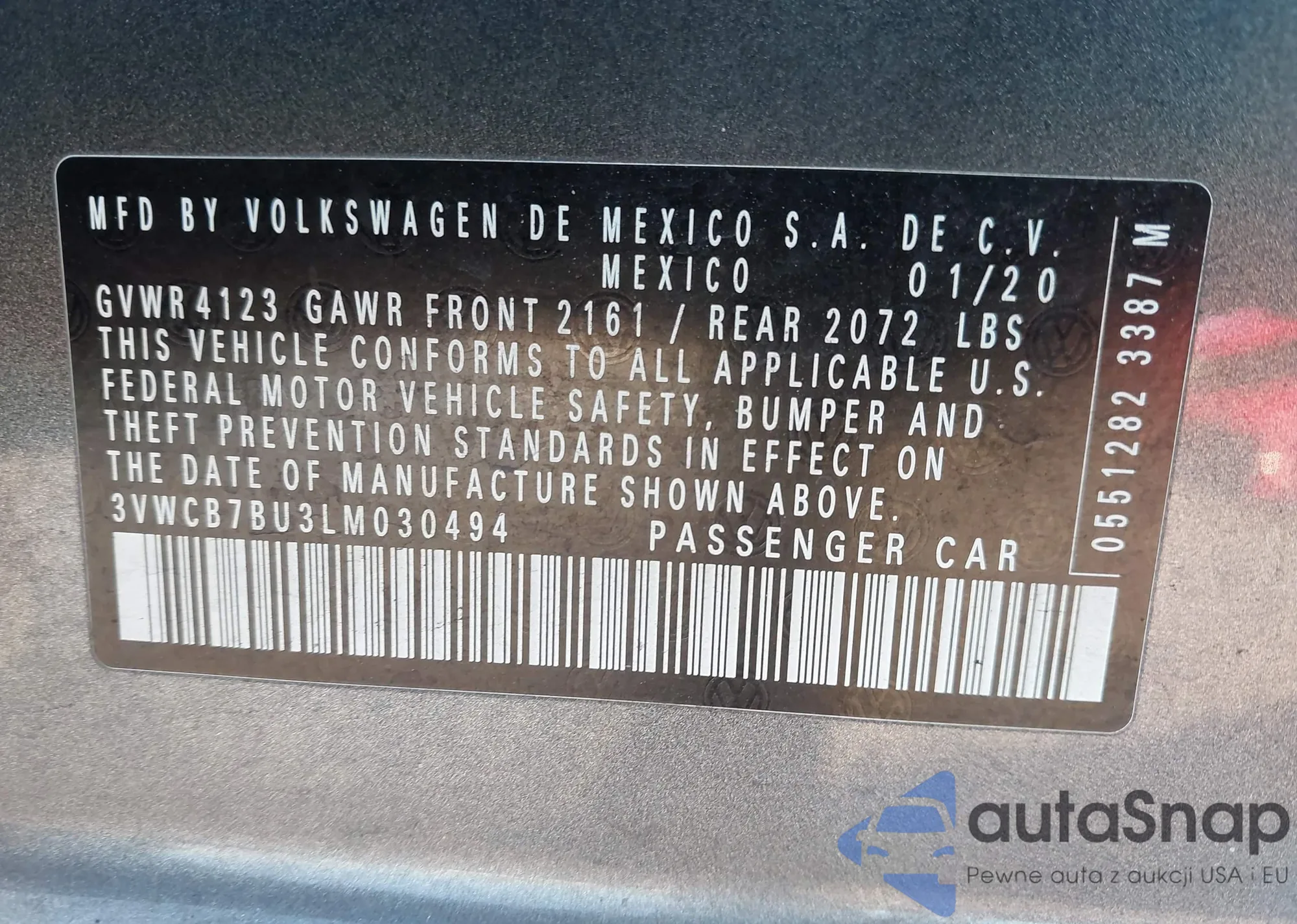 • VIN 3VWCB7BU3LM030494