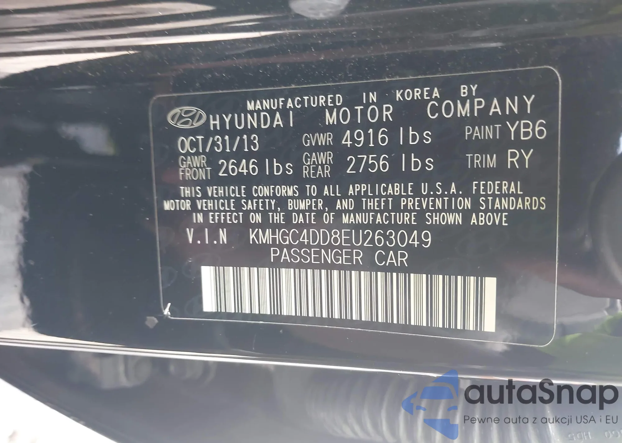 LOT: 43054493 VIN: KMHGC4DD8EU263049
