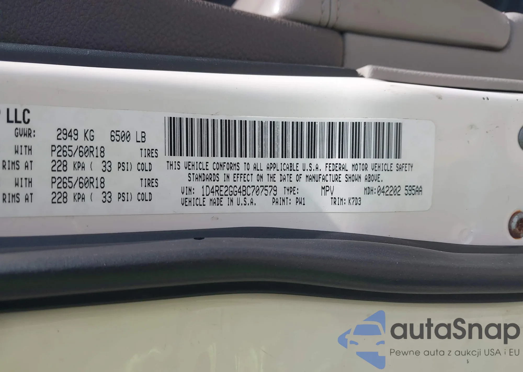 LOT: 42949423 VIN: 1D4RE2GG4BC707579