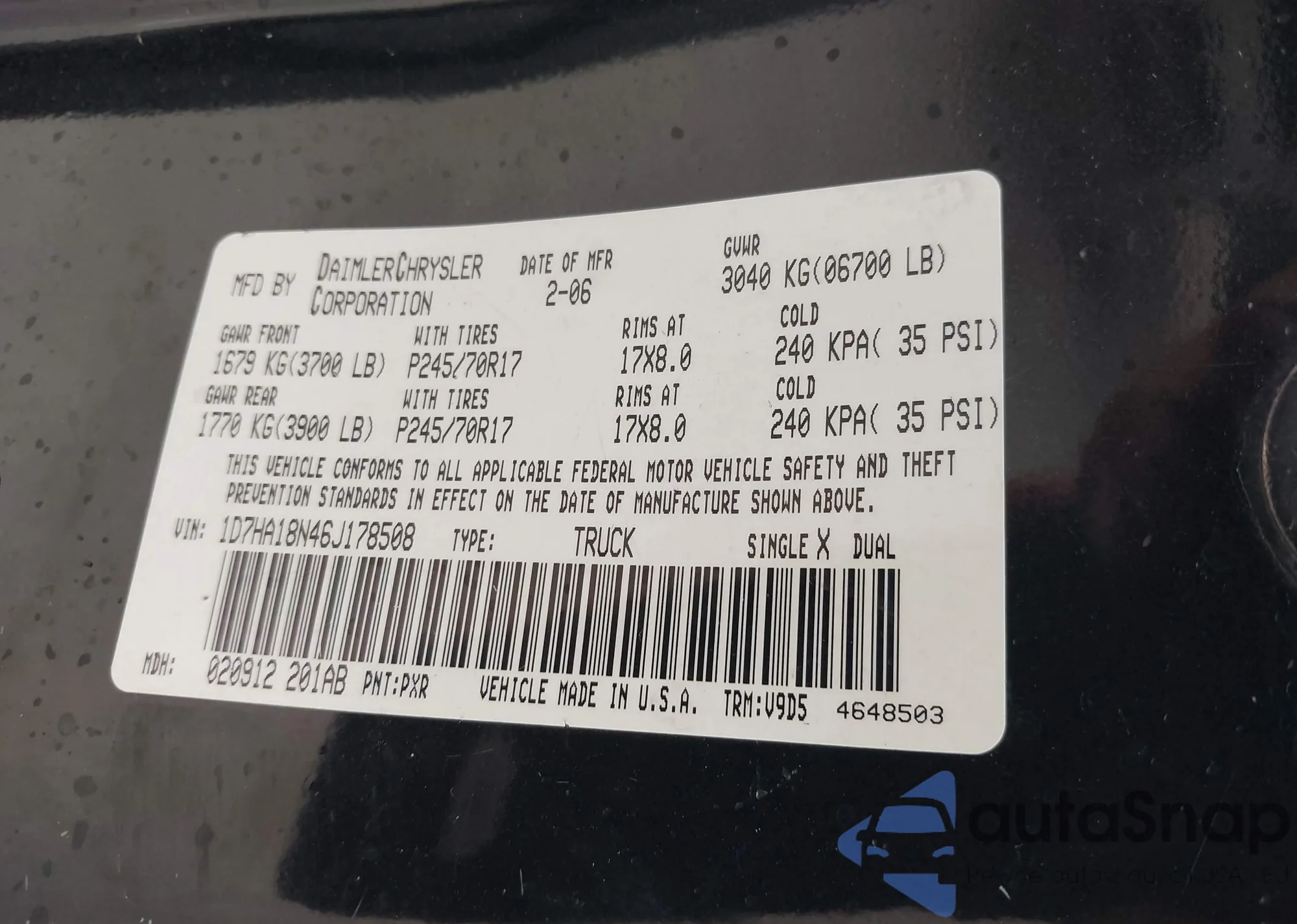 • VIN 1D4HD48NX6F174343