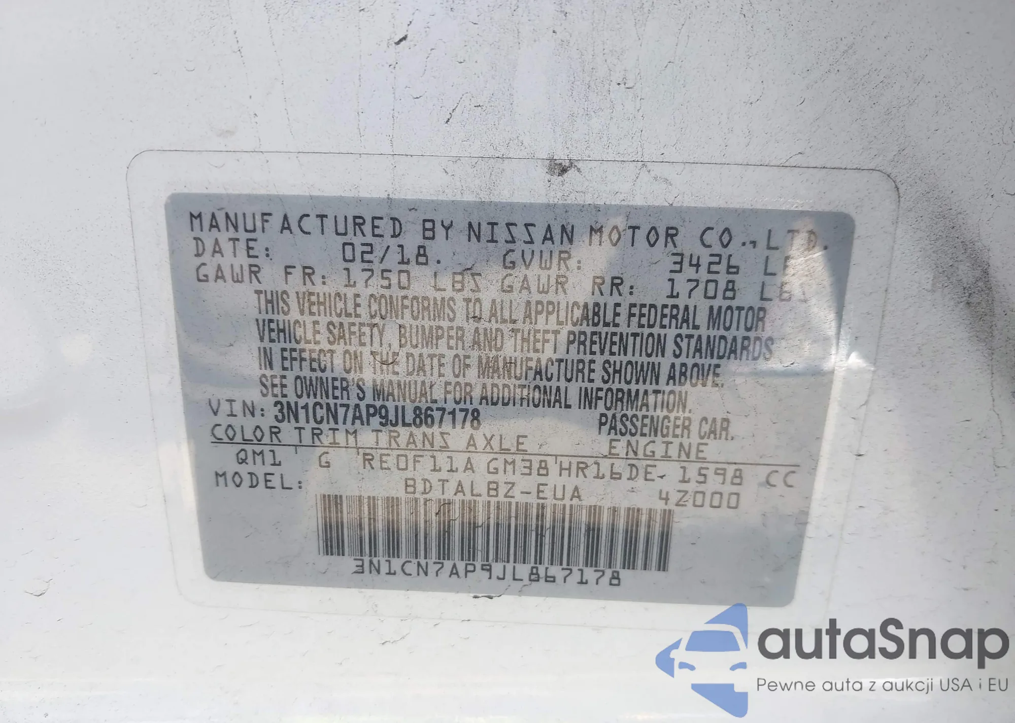 • VIN 3N1CN7AP9JL867178
