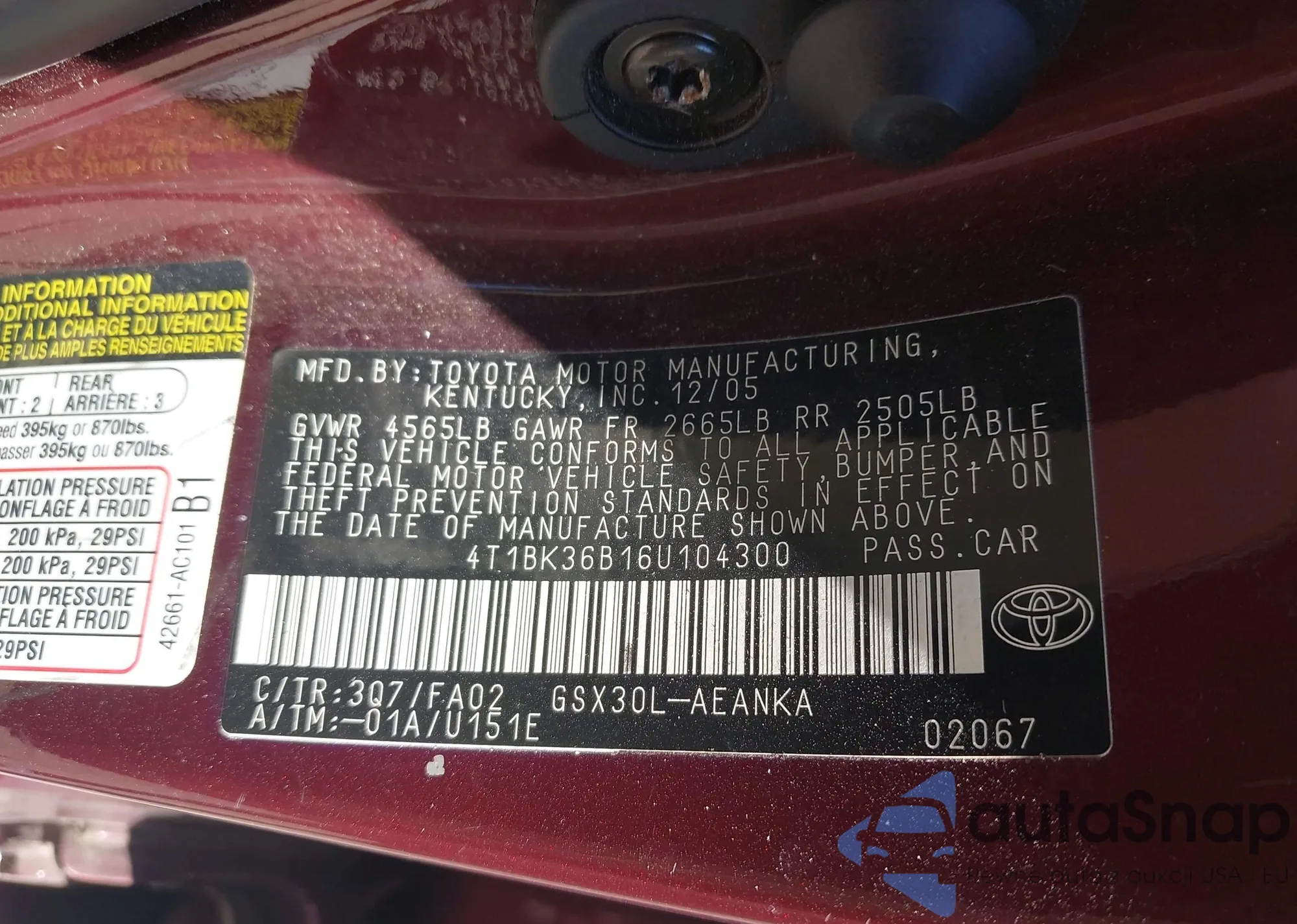• Lot number 42867306
