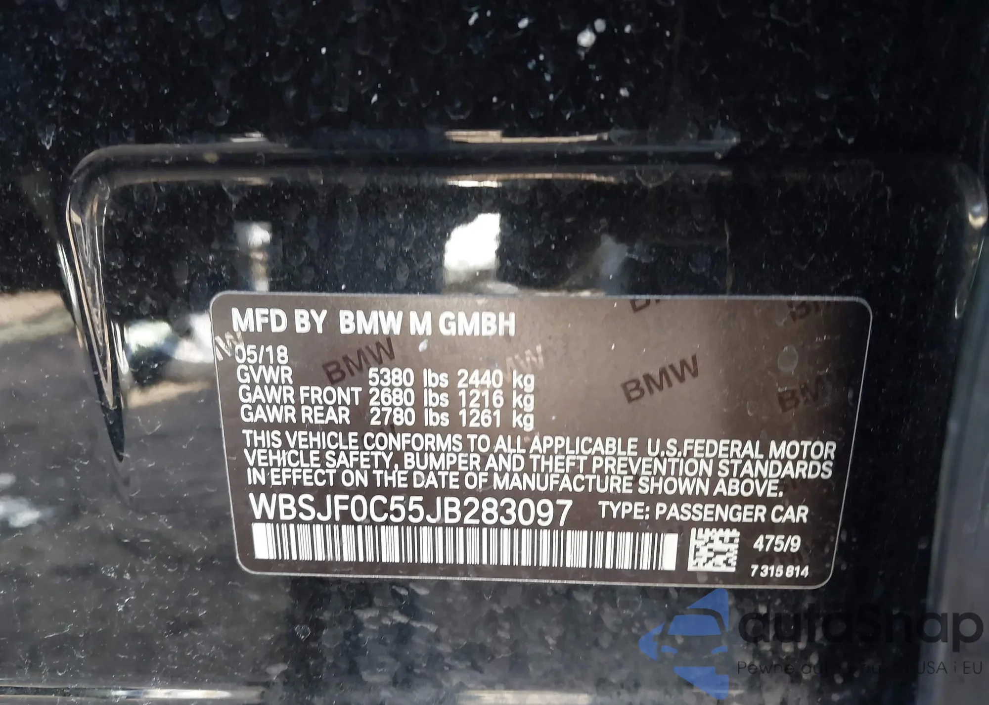 LOT: 41632890 VIN: WBSJF0C55JB283097
