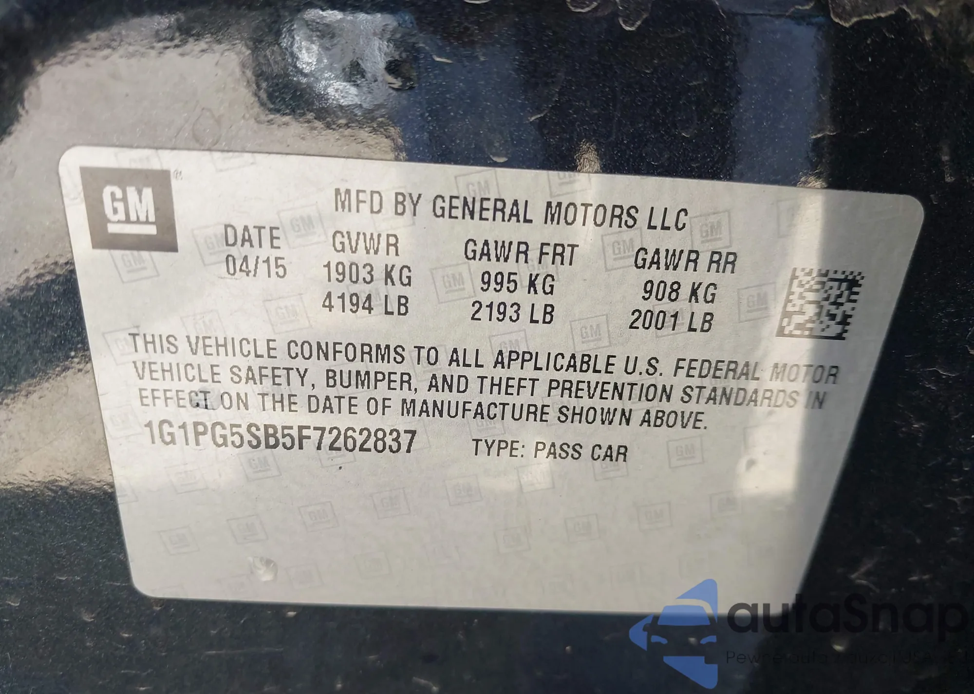 LOT: 43189093 VIN: 1G1PG5SB5F7262837