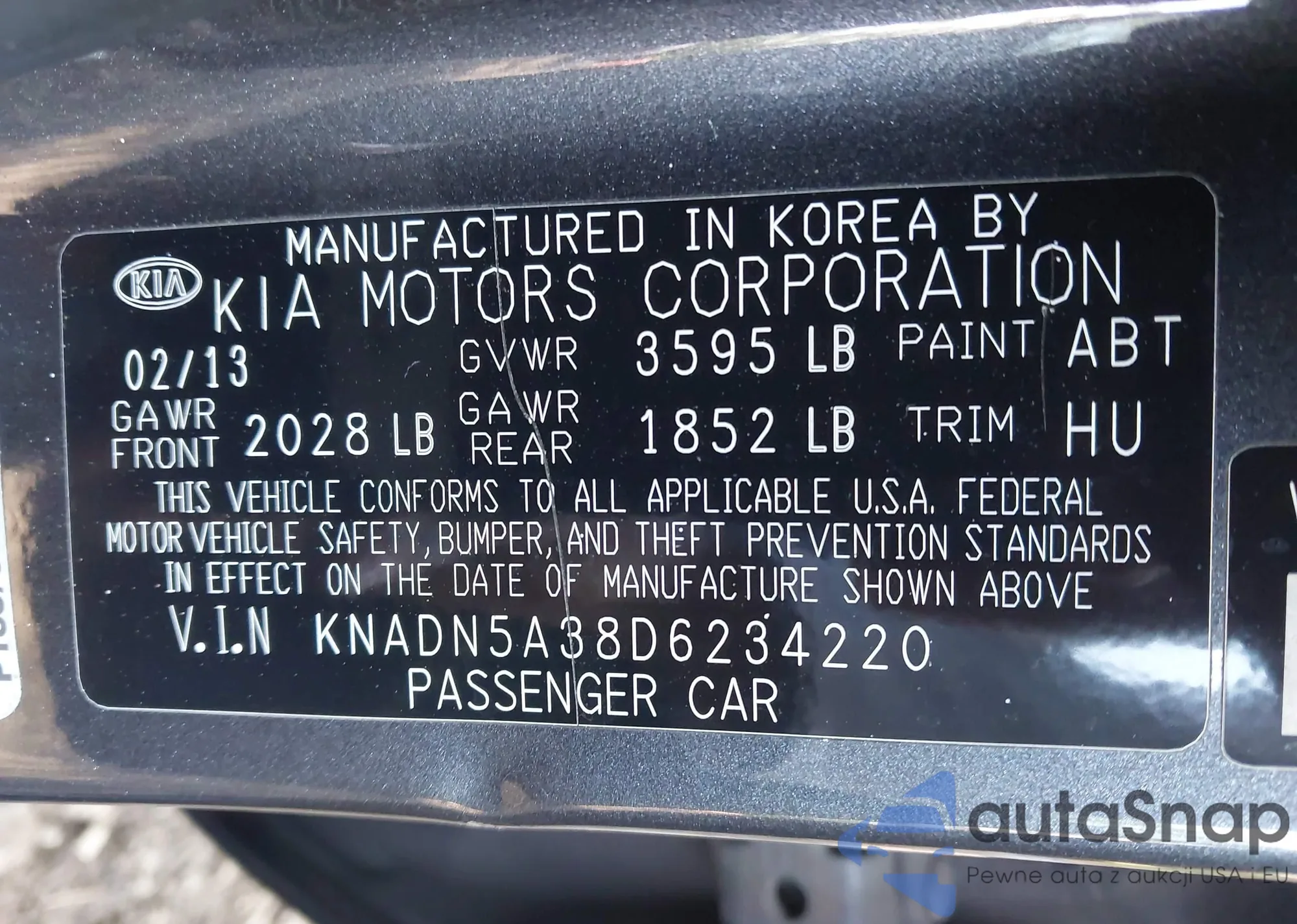 • VIN KNADN5A38D6234220