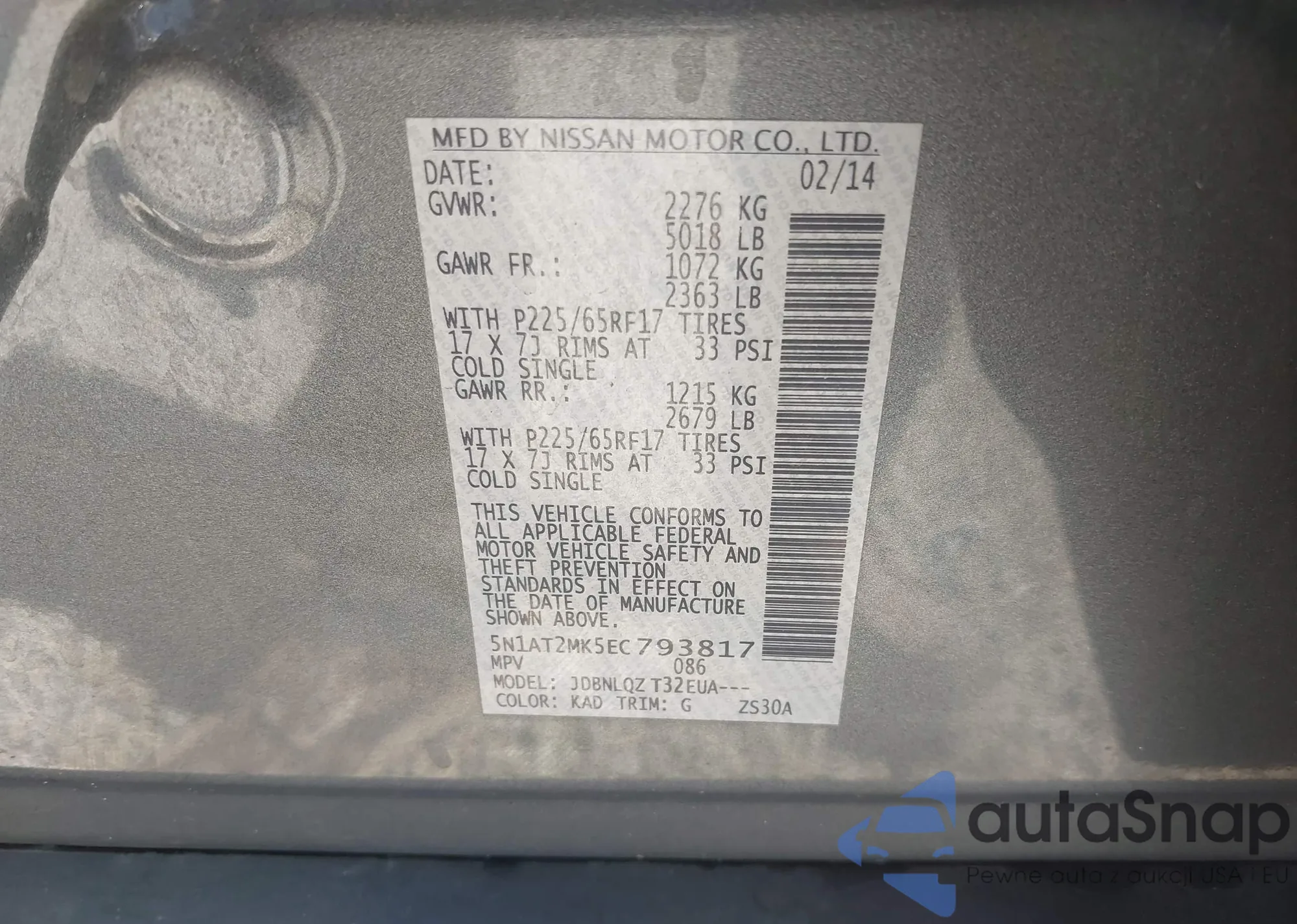 • VIN 5N1AT2MK5EC793817